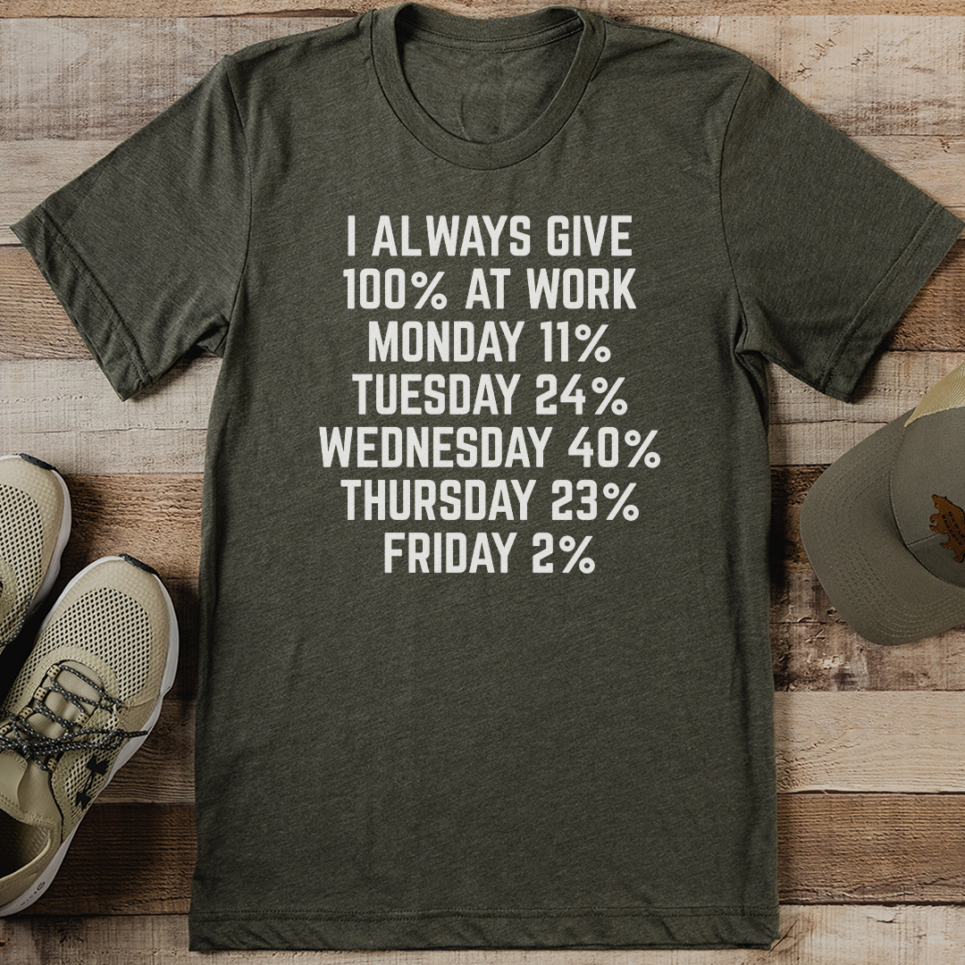 I Always Give 100 At Work Monday 11 Tuesday 24 Wednesday 40 Thursday 23 Friday 2 Tee M Olive