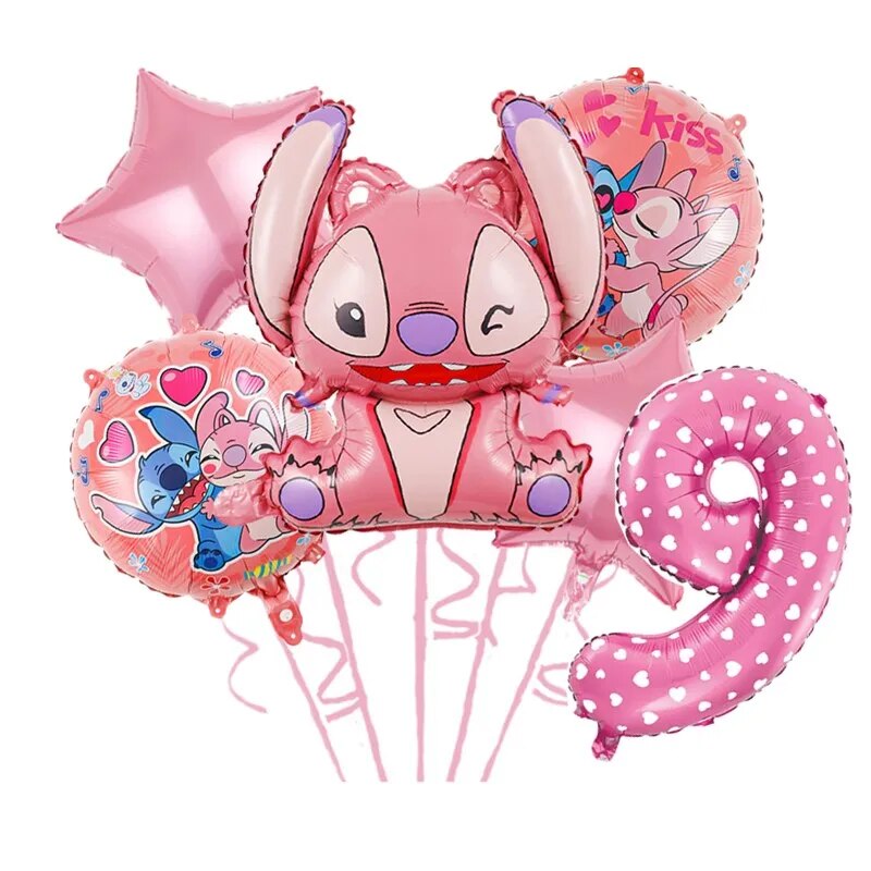 Lilo & Stitch Pink Foil Balloon: Perfect Decor For Boy Girl Birthday & Baby Shower! 6pcs Number 9