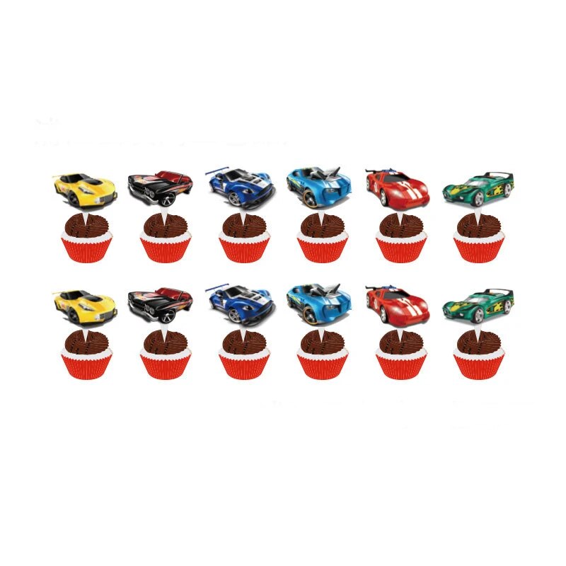 Hot Wheels Party Supplies: Disposable Tableware, Balloons, Cups, Plates, Tablecloth & More For Birthday Or Baby Shower D 24pcs Cupcake