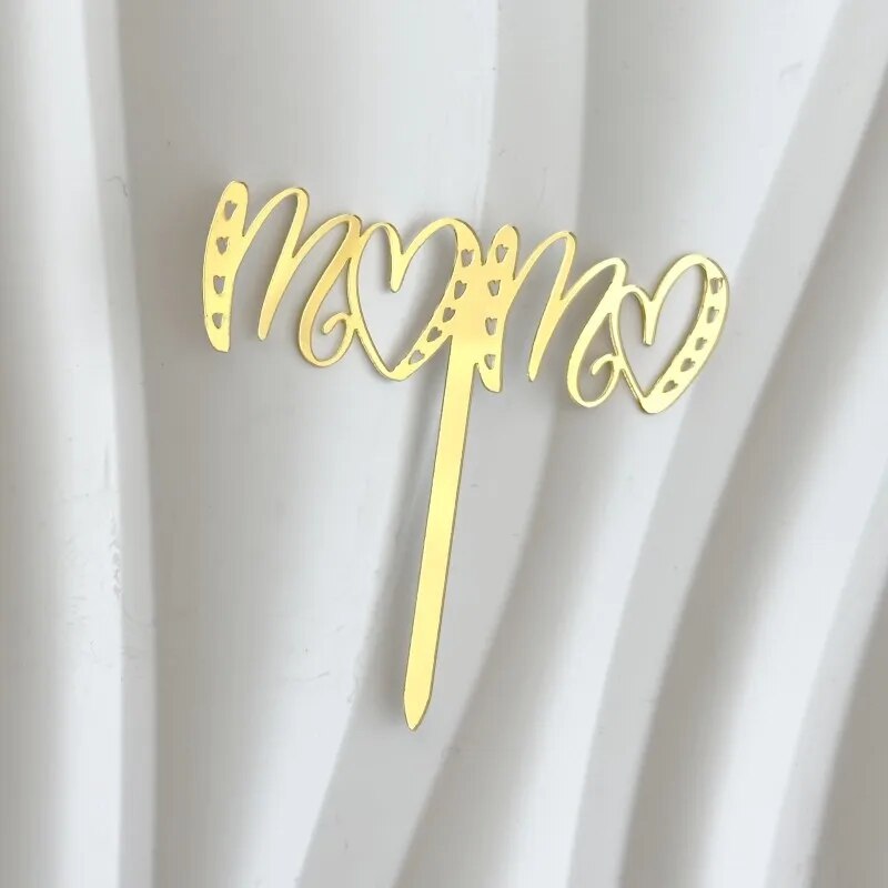 2024 Gold Acrylic MOM Cake Topper: Simple Design For New Mothers Day Birthday Perfect Mother's Day Gift & Dessert Deco gold 12