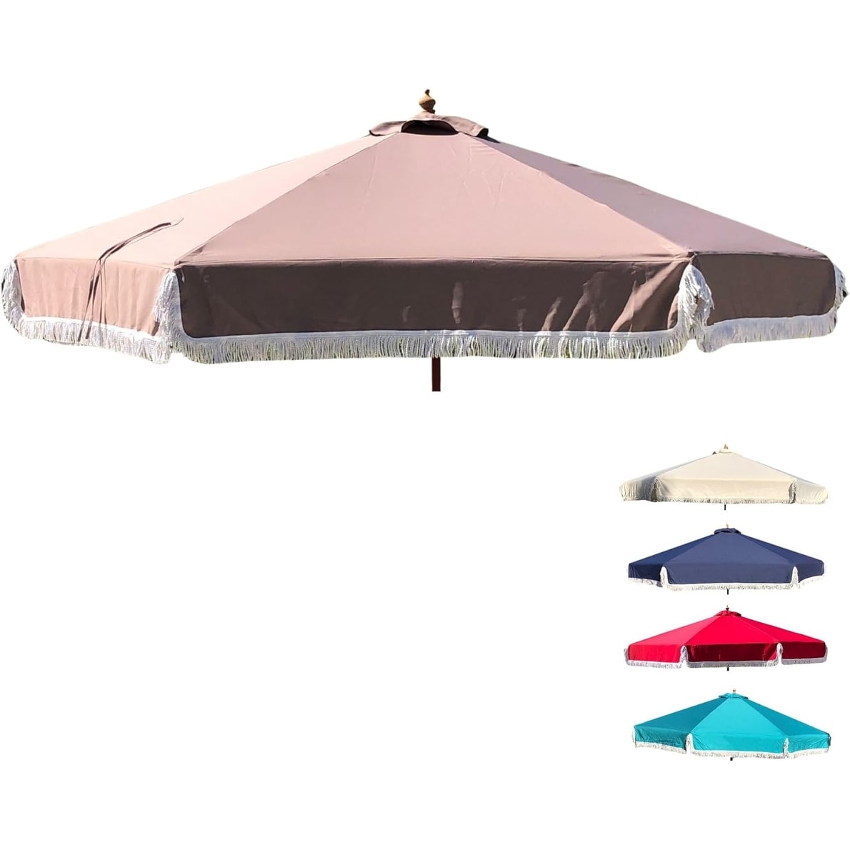 9ft 6 Rib Replacement Patio Umbrella Canopy - 300D UV Protective & Water Resistant Cover with Taupe Fringe (Canopy Only)