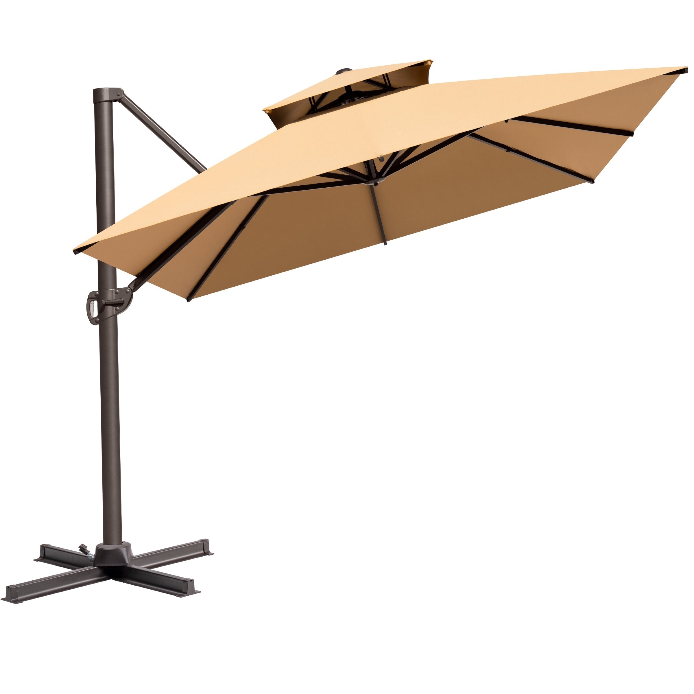 Pellebant Outdoor 10 FT Square Cantilever Patio Umbrella 360 Degree Rotation with Premium Base