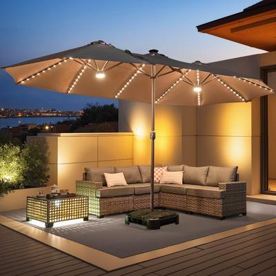 Ainfox 13ft Double-sided Patio Umbrella Solar LED Lighted Outdoor Martet Umbrella with Base