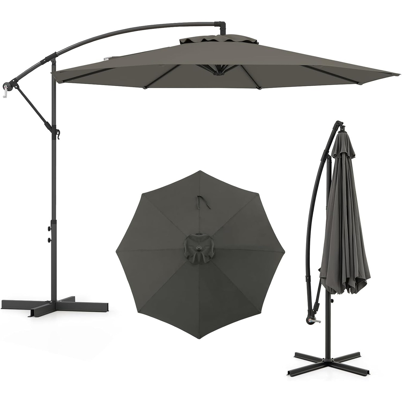 10 FT Offset Cantilever Outdoor Umbrella with Cross Base, Crank, 8 Ribs for Garden, Poolside, Backyard