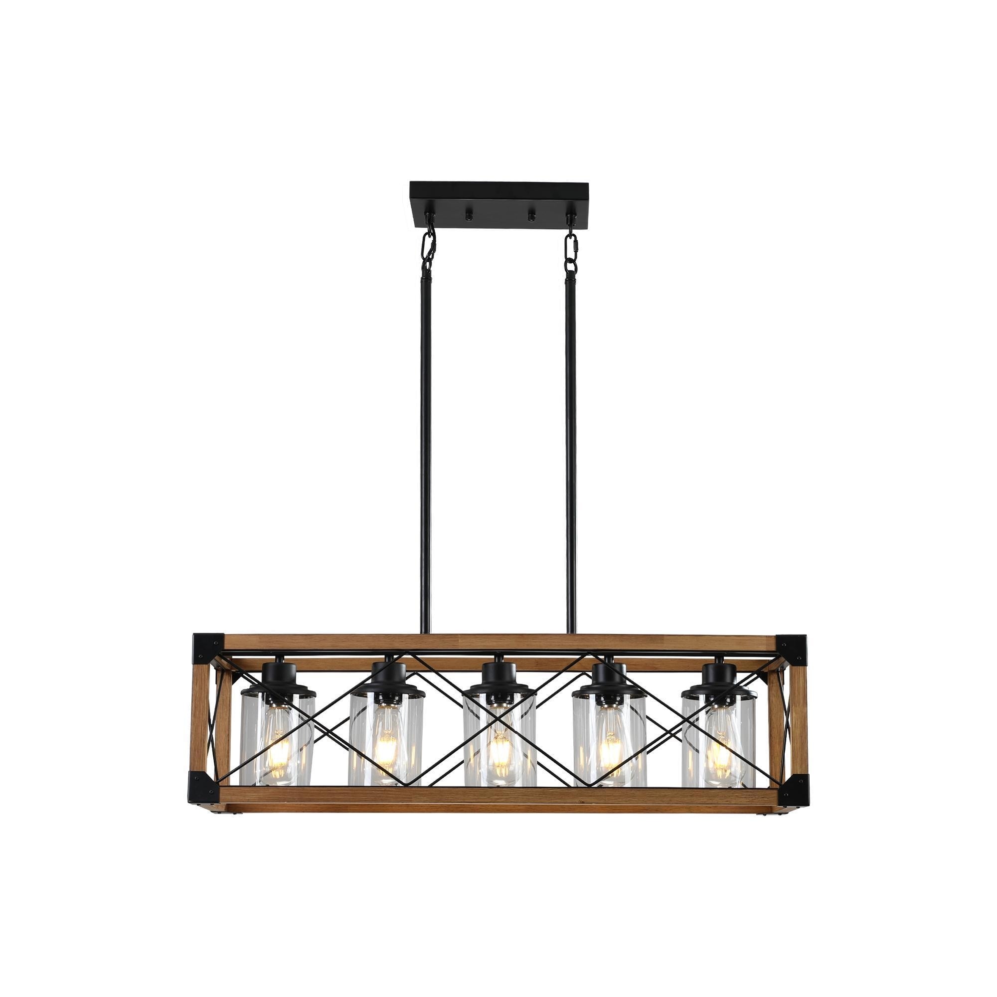 32-Inch Walnut Industrial Farmhouse Rectangular Chandelier