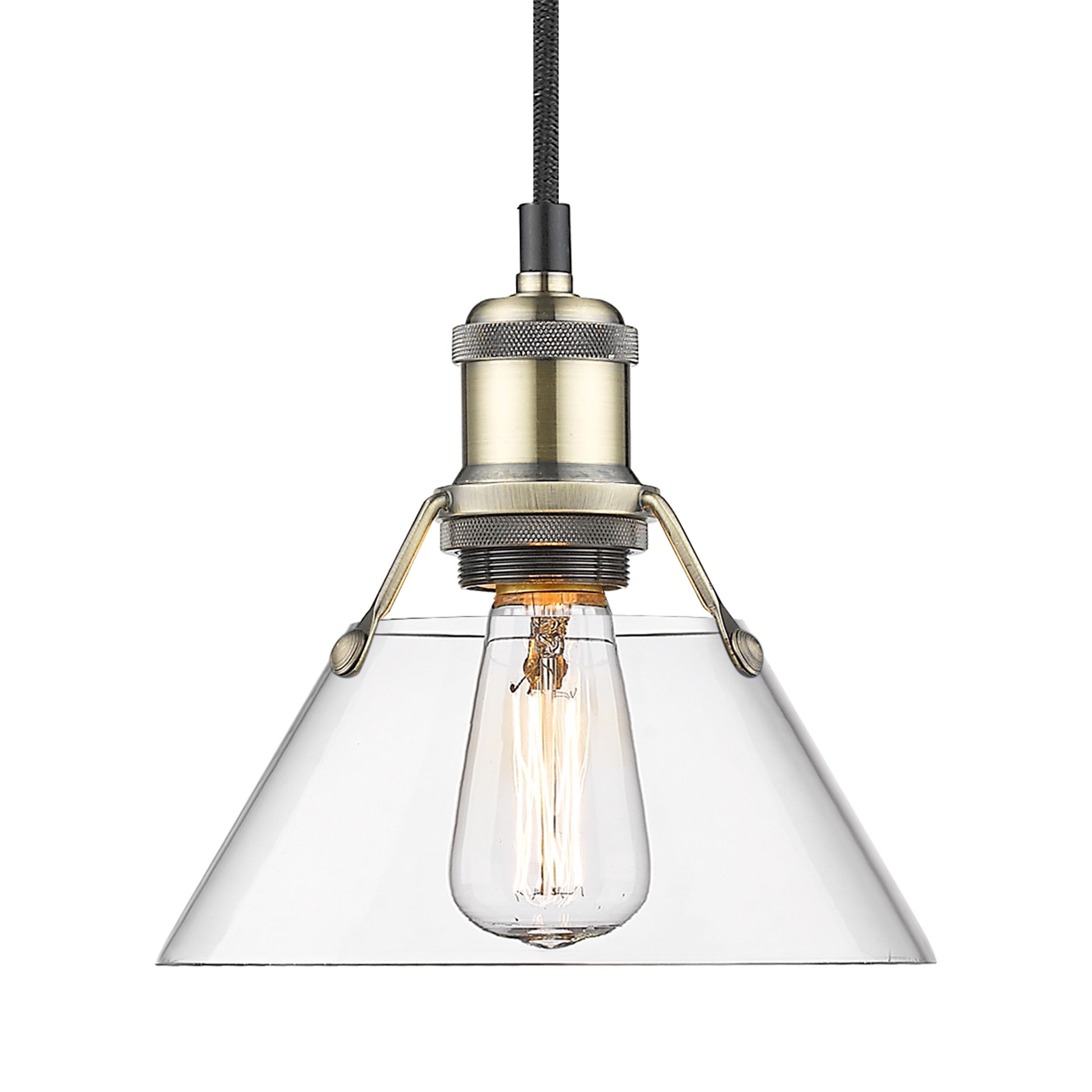 Yep by Golden Lighting Orwell 1-light 8in Pendant in Aged Brass and Clear Glass - Gold