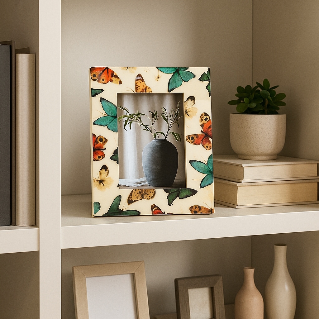 Wood Resin Butterflies Photo Frame Decor - Ivory
