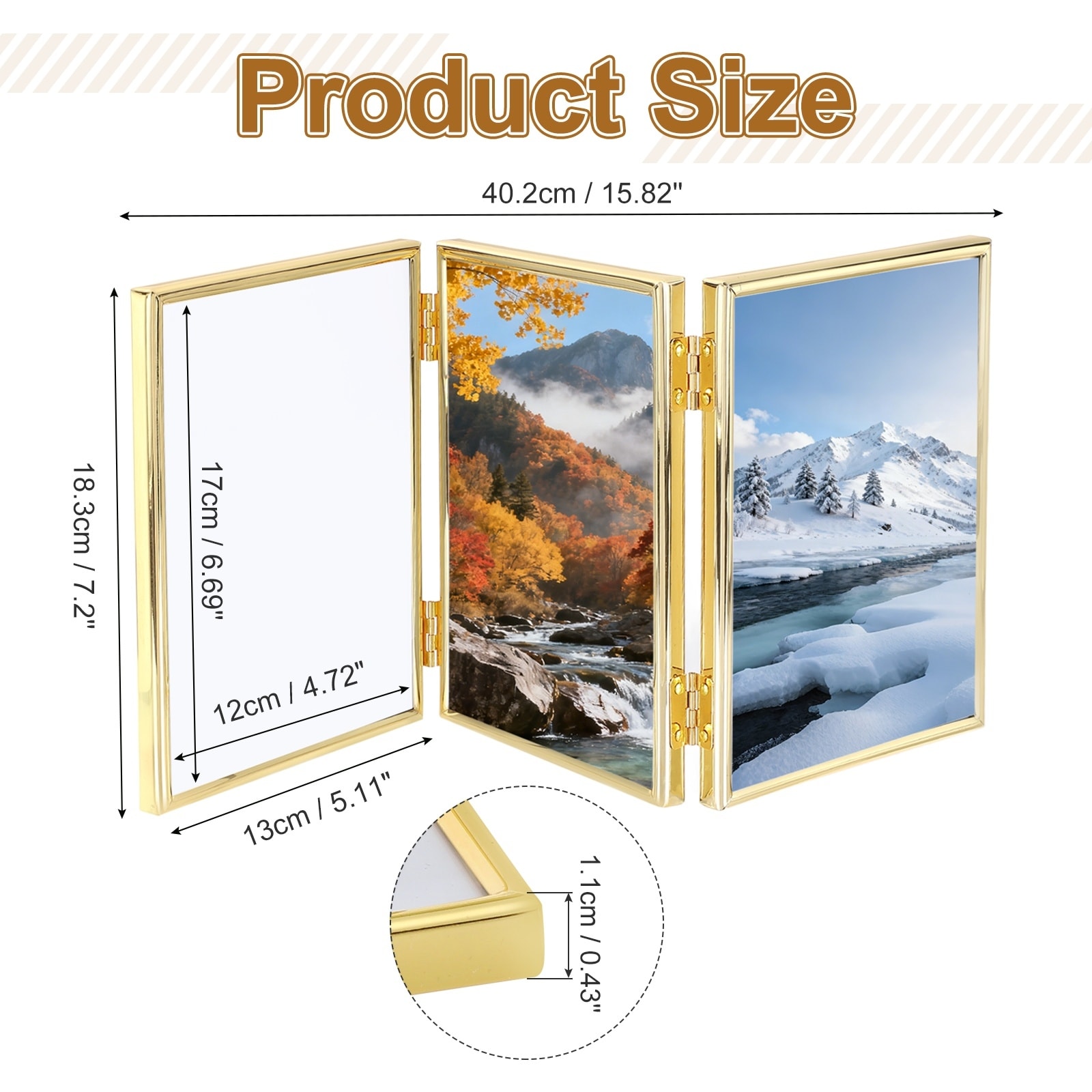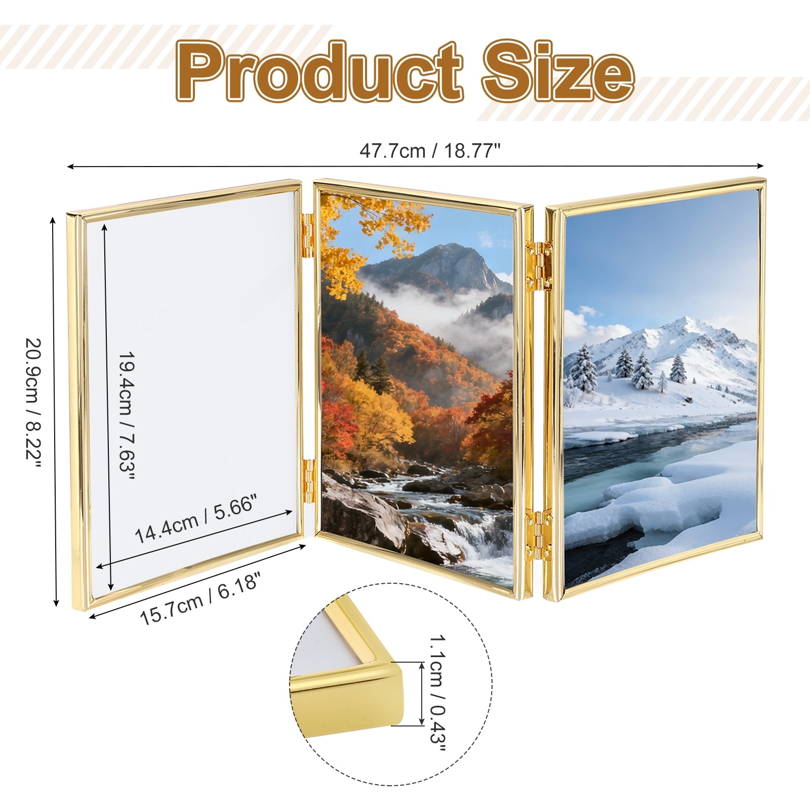 Triple Picture Frame, Hinged 3 Photos Folding Collage Photo Frames with Glass/Flocked Back Panel Tabletop Display for Pictures