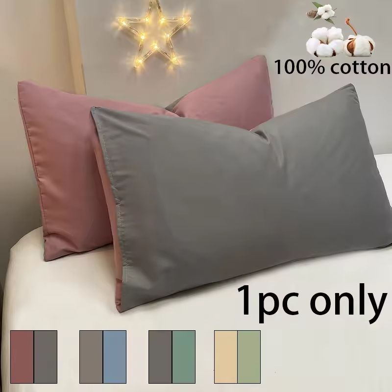 Cotton Color Block Pillowcase Super Soft Wrinkle Resistant With Envelope Closure blue