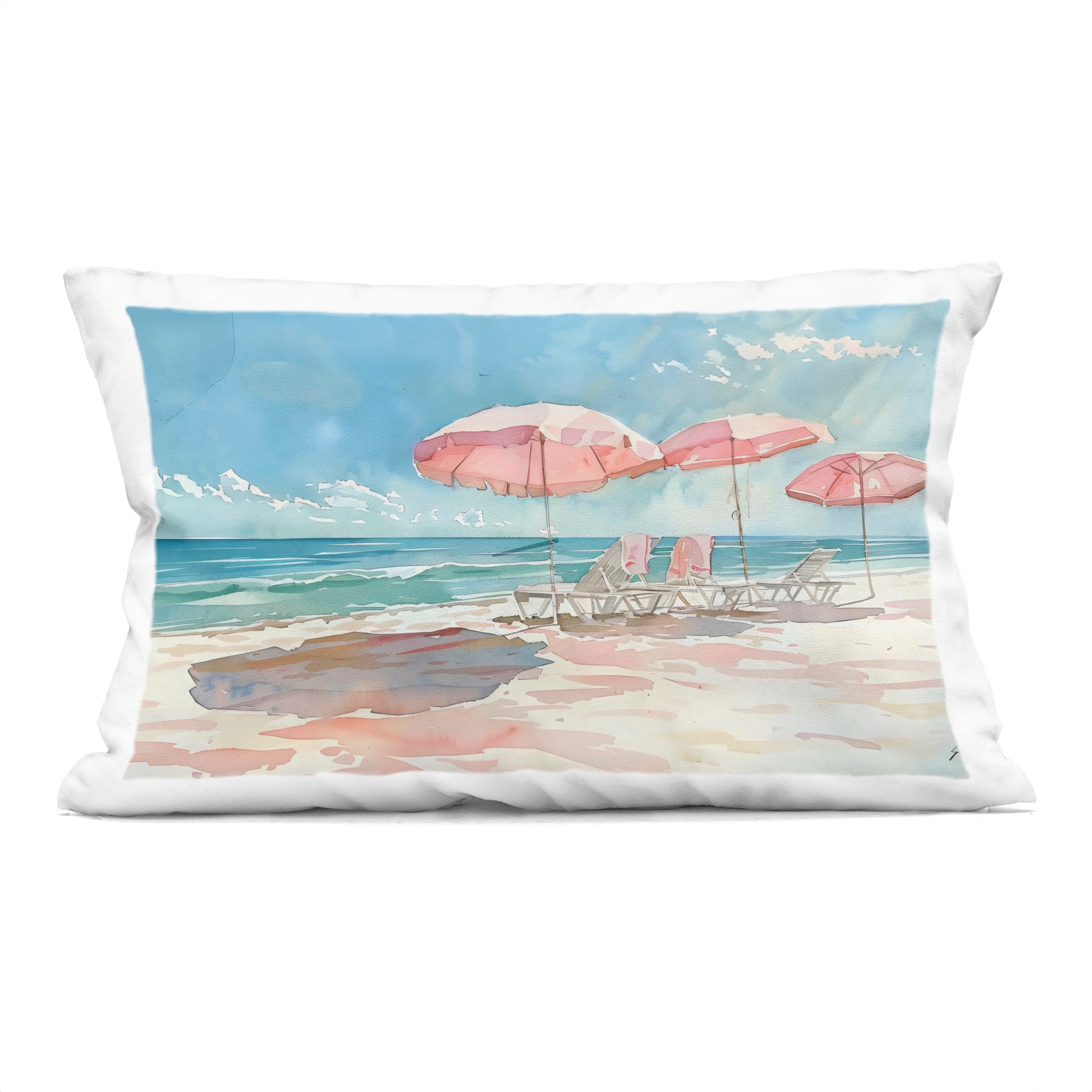 Stupell Pastel Pink Watercolor Beach Decorative Printed Throw Pillow Design By LSR Design Studio