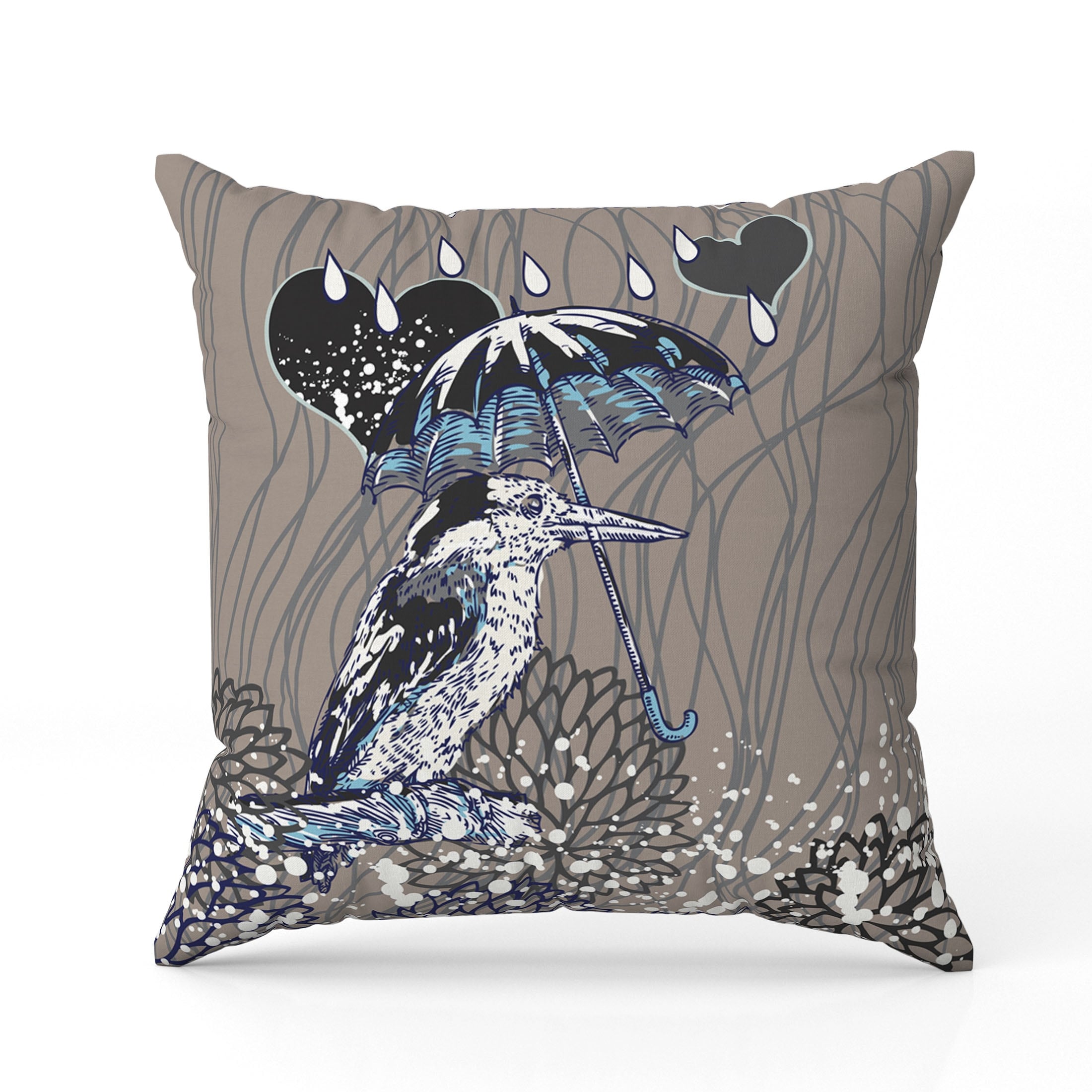 Bird with Umbrella Throw Pillow26x26 Faux Suede