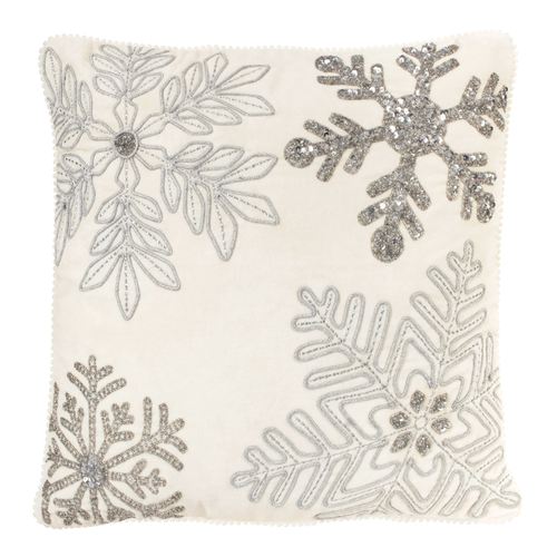 Sparkling Snowflake Decorative Pillow Off White , Off White