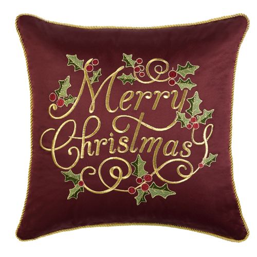 Camelot Christmas Pillow 18" Square, 18" Square, Burgundy