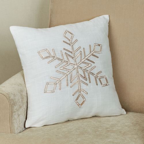 Beaded Snowflake Decorative Pillow Off White , Off White