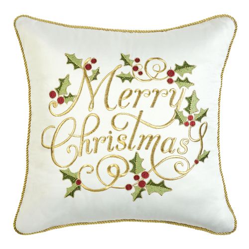 Camelot Christmas Pillow 18" Square, 18" Square, Ivory