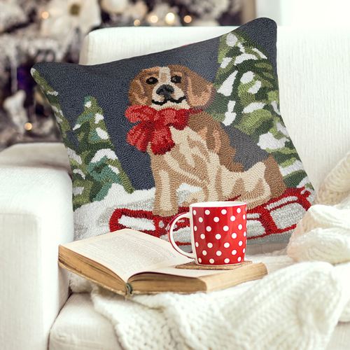 Sledding Dog Decorative Pillow Multi Earth 18" Square, 18" Square, Multi Earth