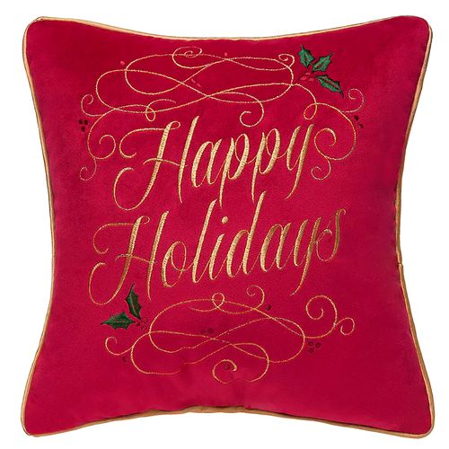 Happy Holidays Decorative Pillow Red , Red