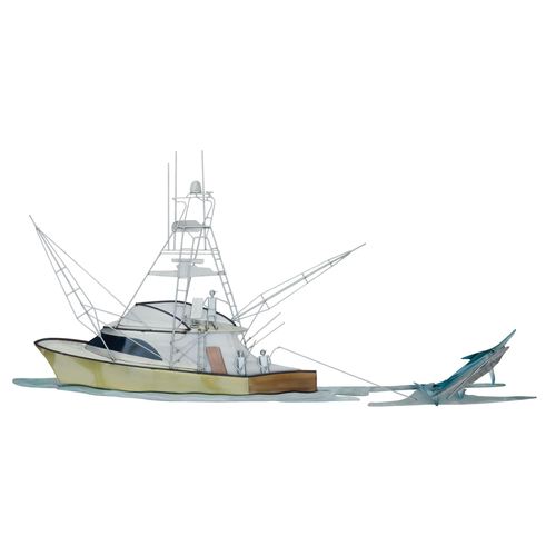 Hooked Up Fishing Boat Wall Sculpture Multi Metallic , Multi Metallic
