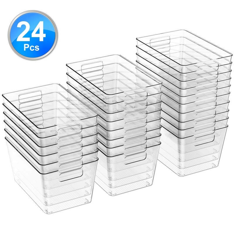 Large Clear Plastic Storage Bins 11 x 7.5 Inch Rectangle Acrylic Organizer Containers with Handle for Pantry, Closet