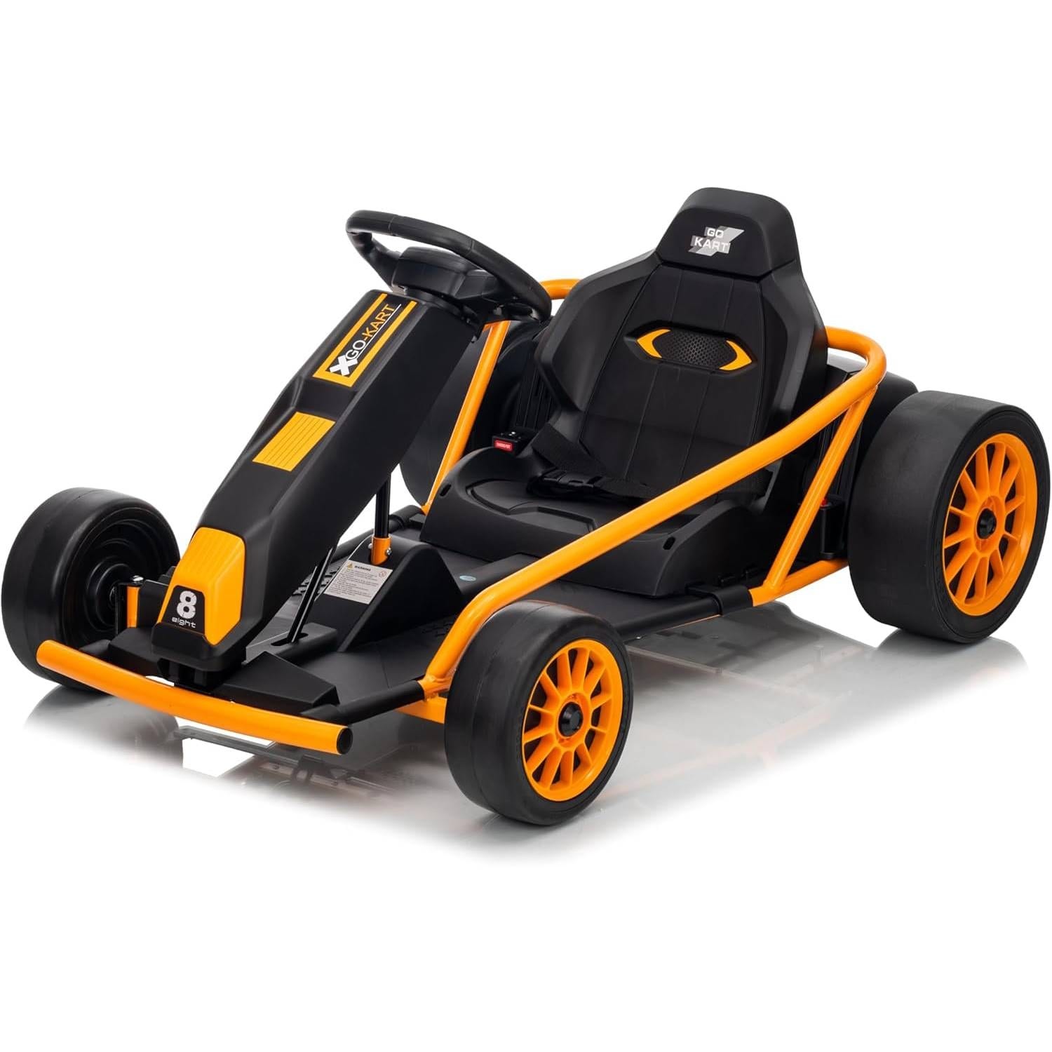 24V Kids Go Kart, 2×300W Motors, 8.1MPH Drift Racing Car w/ 9Ah Battery, Music, Horn & Seatbelt for Ages 8–12