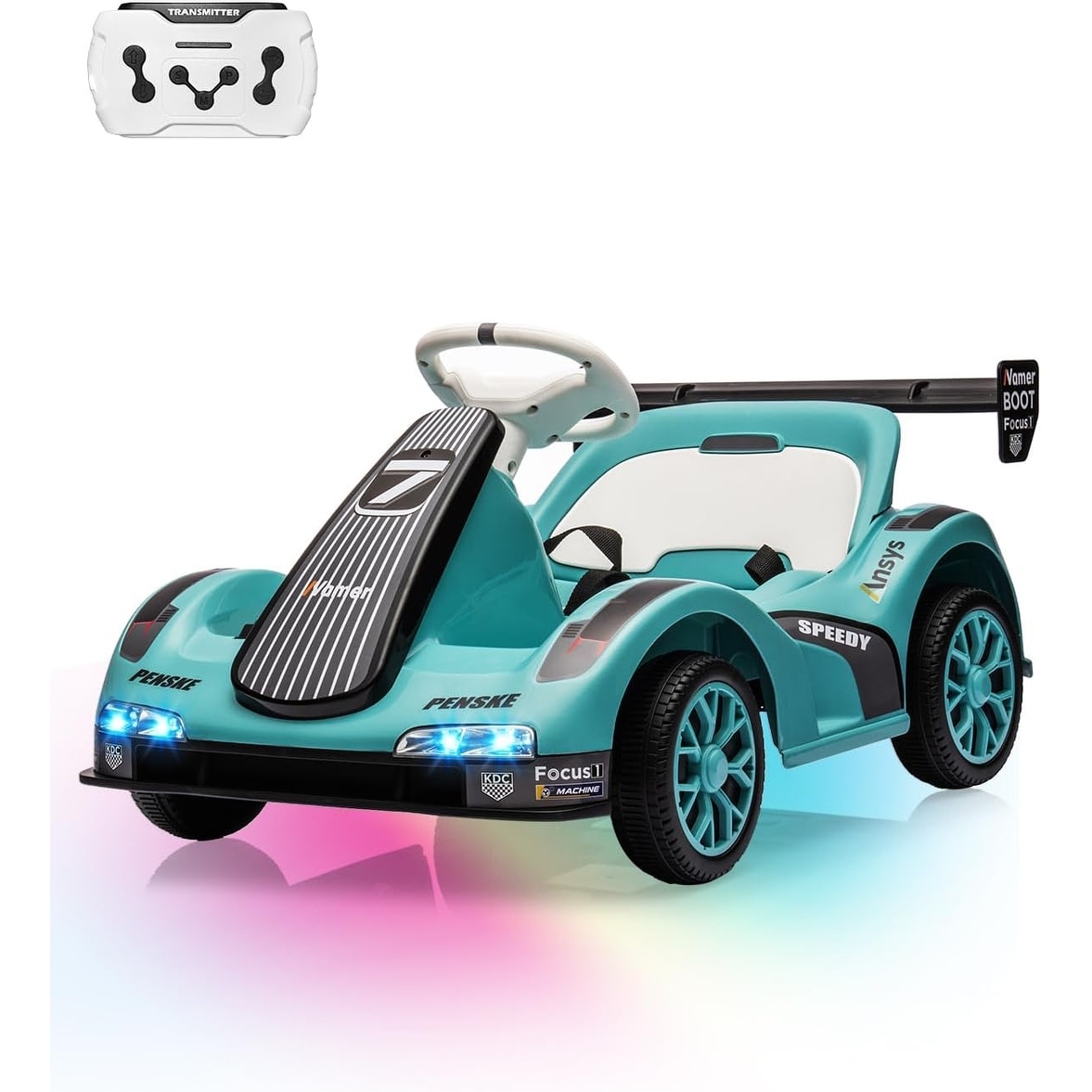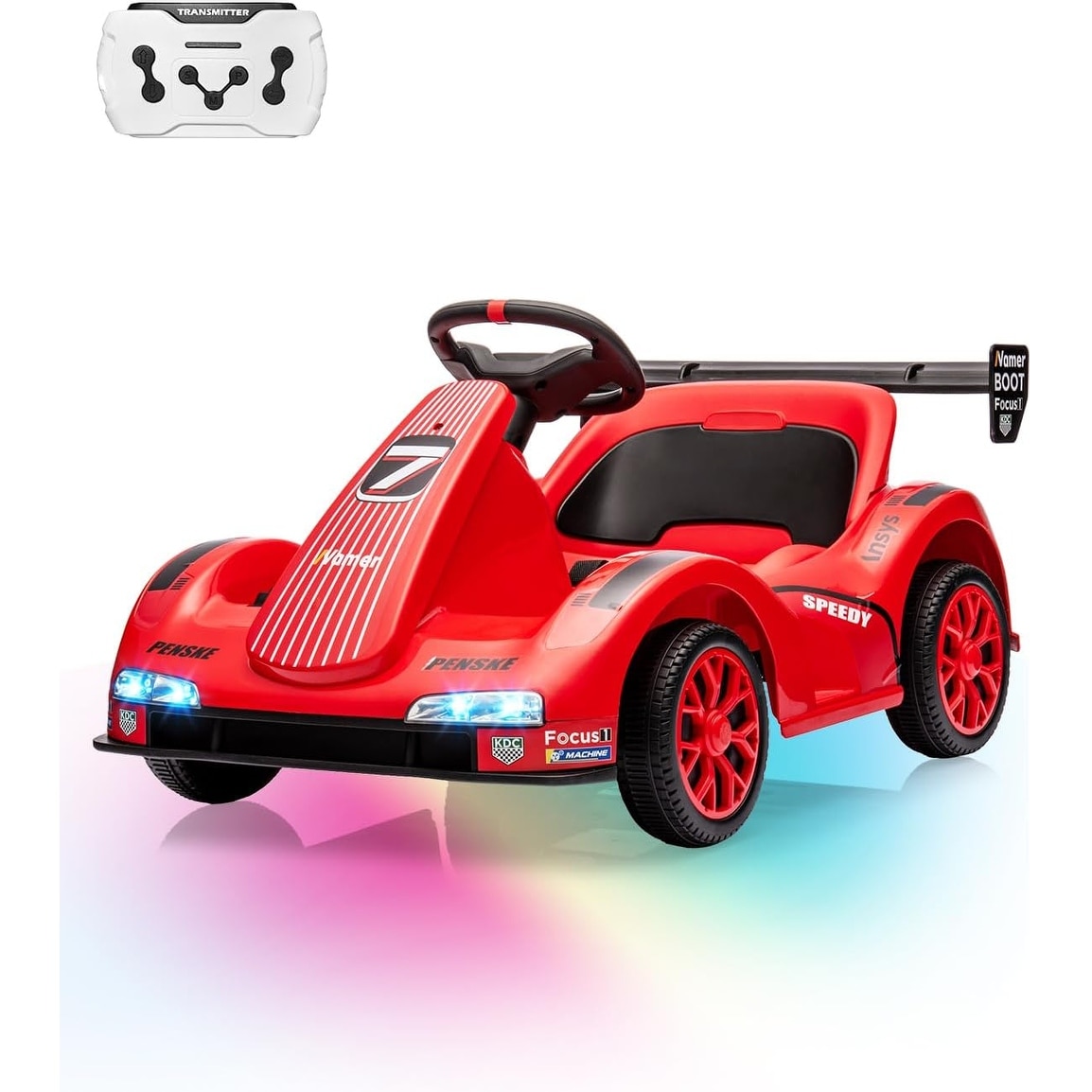 Electric Go Kart Ride On Car for Kids, 2 Motors with Remote Control, Safety Belt, Speed Adjustment, LED Lights & Music