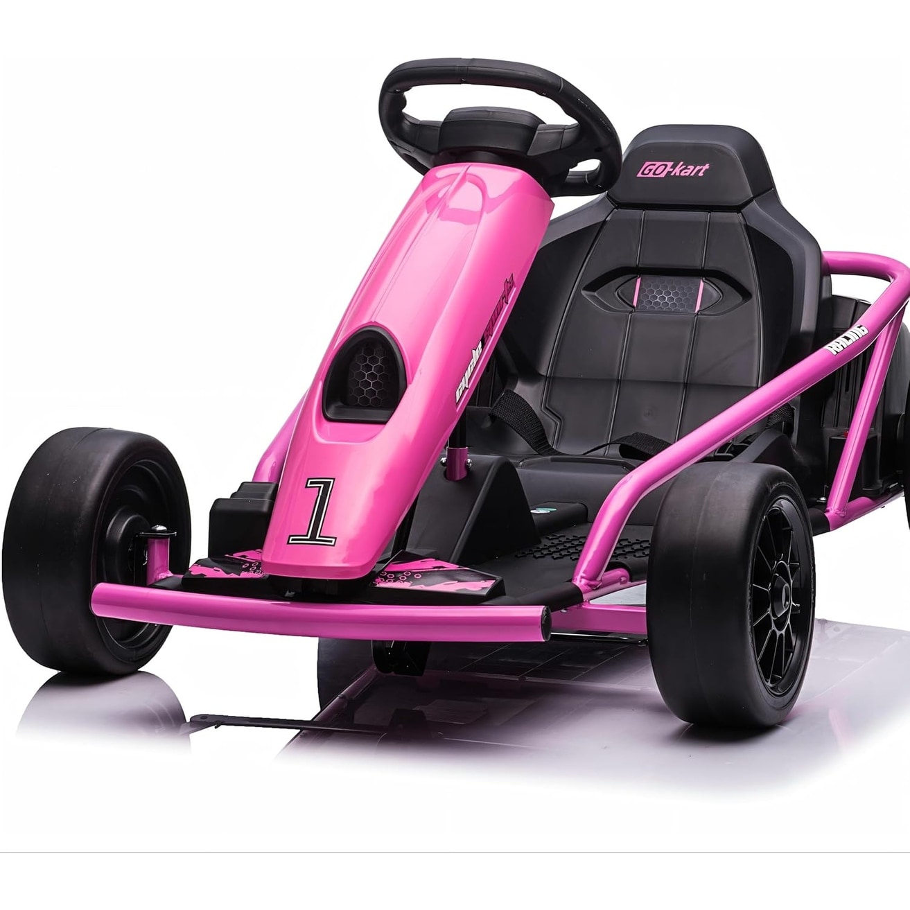 24V Electric Go Kart for Kids 8-12, Drift Kart Car w/Dual 300W Motors, 8MPH, Music, Slow Start, Seatbelt, Racing Toy