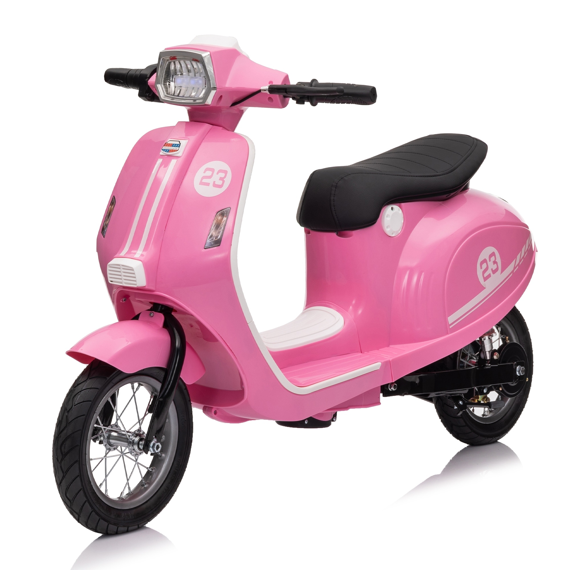 24V Electric Scooter 12 Air Filled Tires Hand Accelerator Brake Dual Suspension MP3 Bluetooth Slow Start Holiday Gift Ages 8+