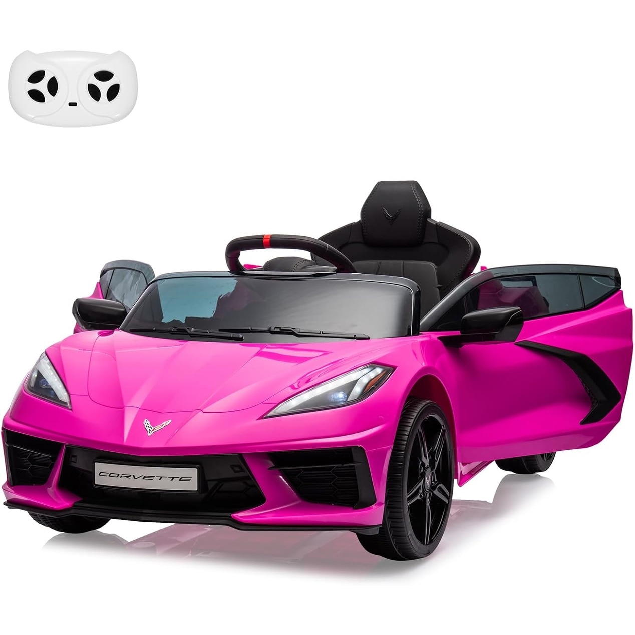 12V Kids Ride On Car, Licensed Corvette Battery Powered Electric Sports Car with Remote, LED, Music & Dashboard