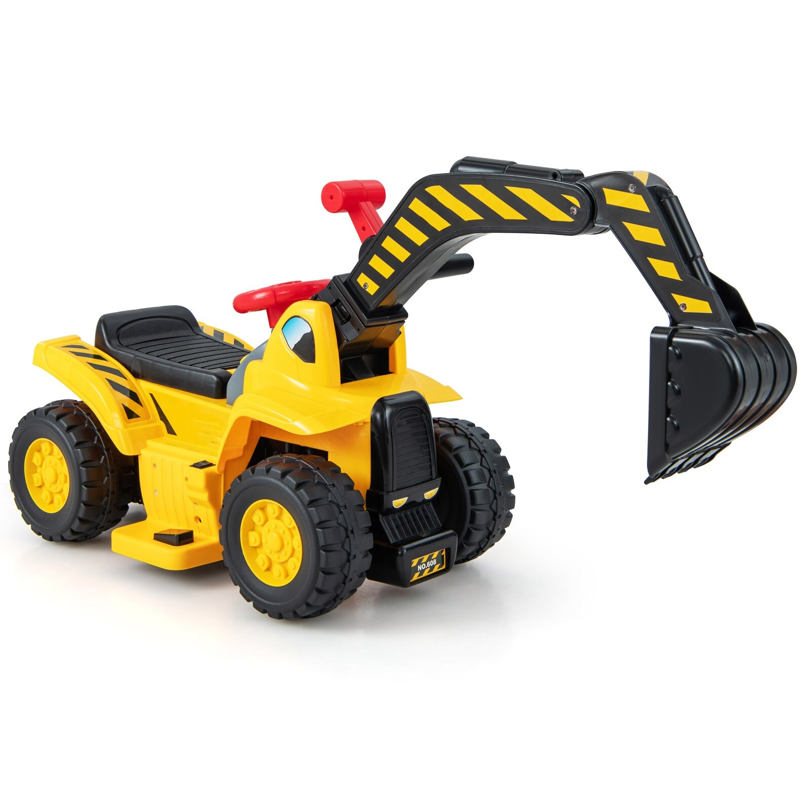 Electric Ride-On Excavator for Kids 2+ 6V Battery Powered Digger with Working Arm - 34.5" x 14" x 18" (L x W x H)