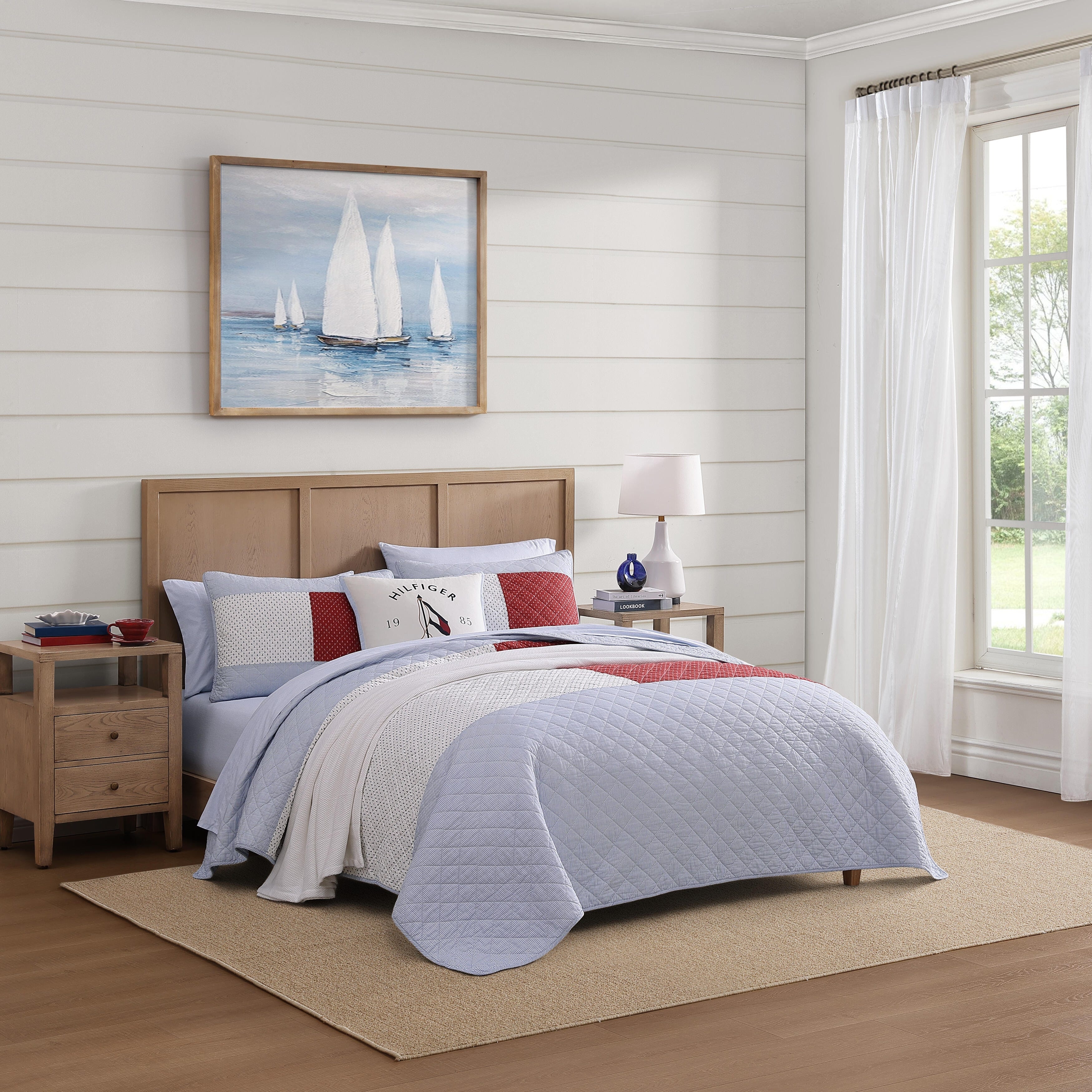 Tommy Hilfiger Nautical Anchor Flag Blue Cotton Reversible Quilt Set