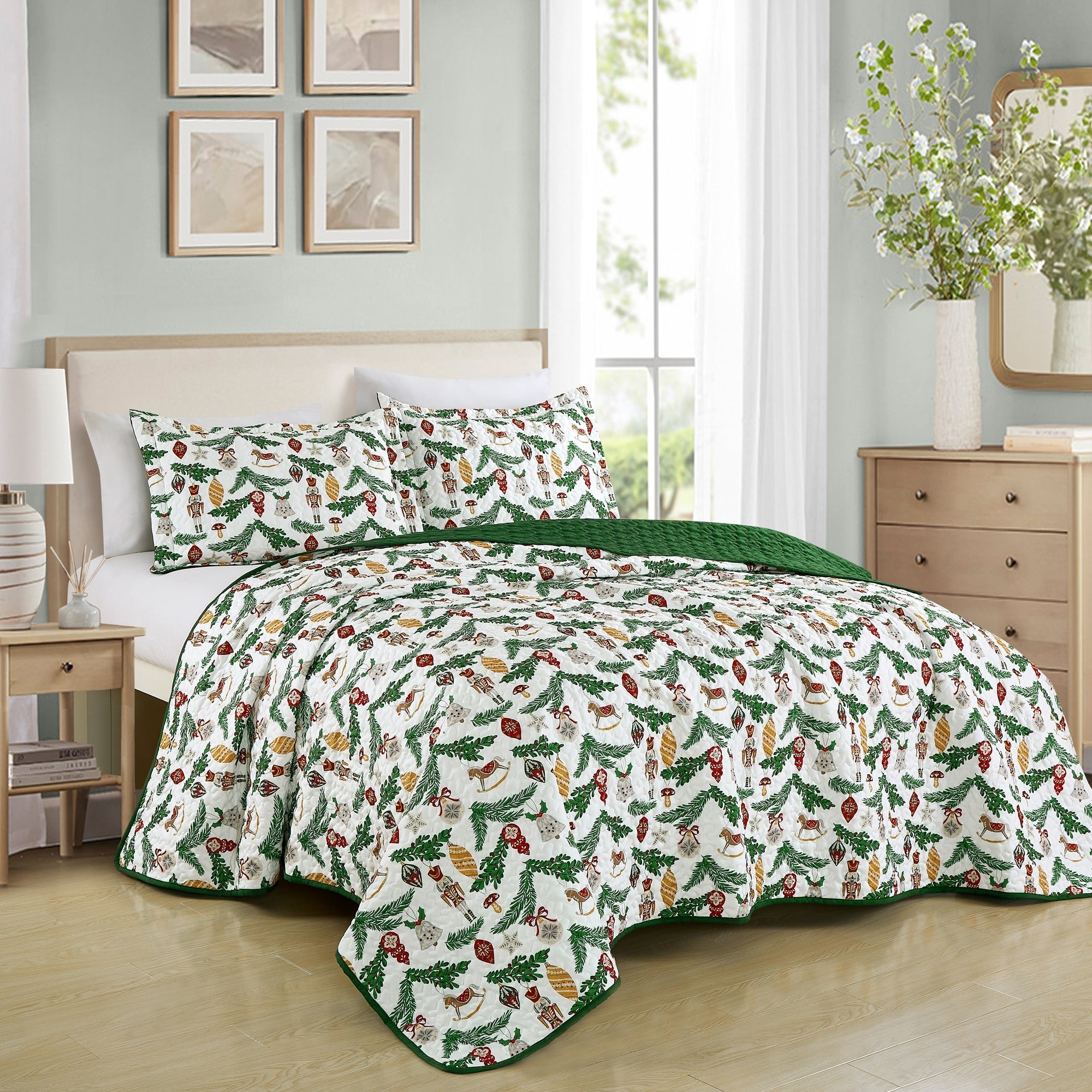 3 Pcs Christmas Evergreen Print Bedspread Set