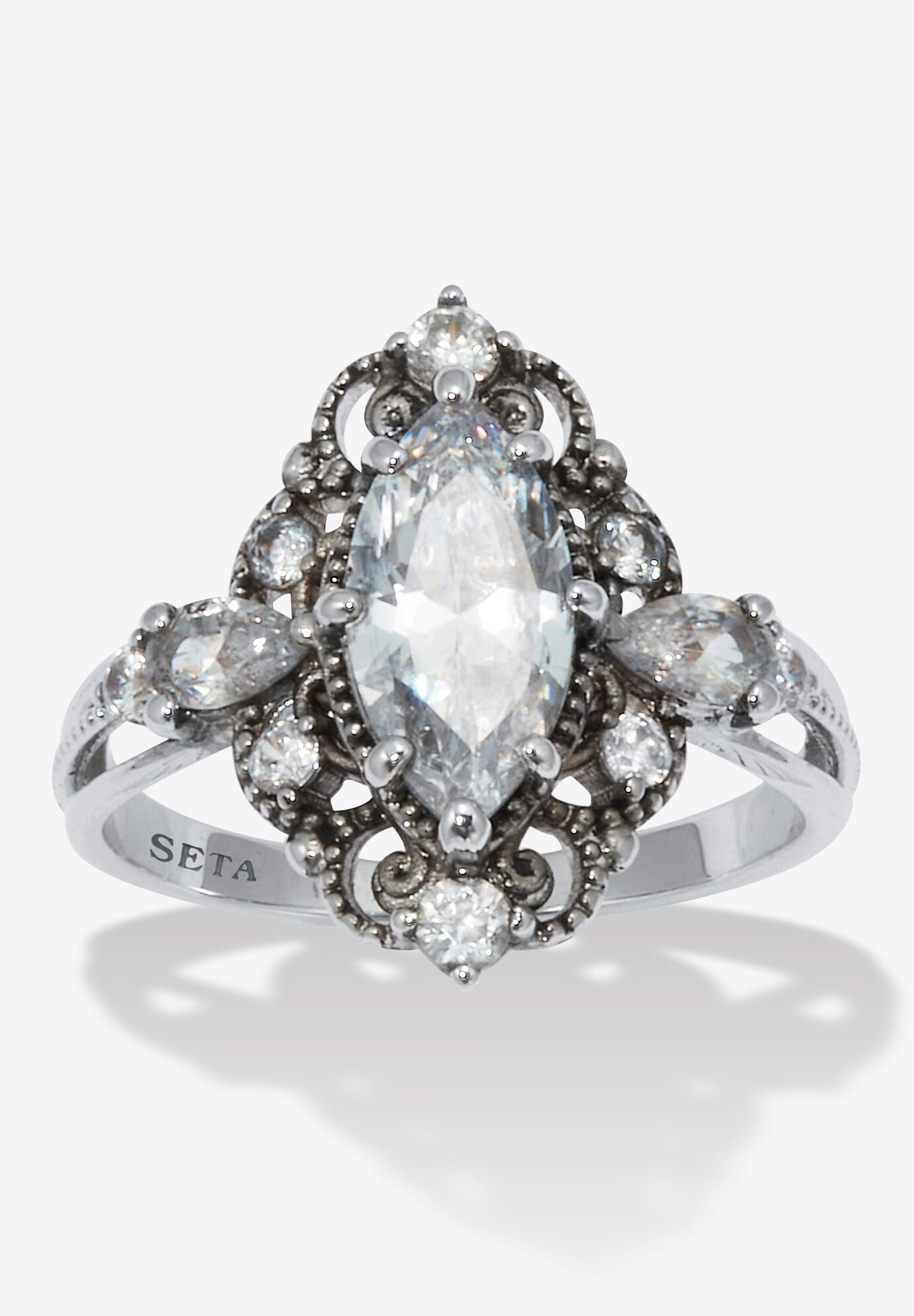 Women's 2.72 Tcw Marquise Cut Cubic Zirconia Platinum-Plated Ring by PalmBeach Jewelry in Platinum (Size 9)