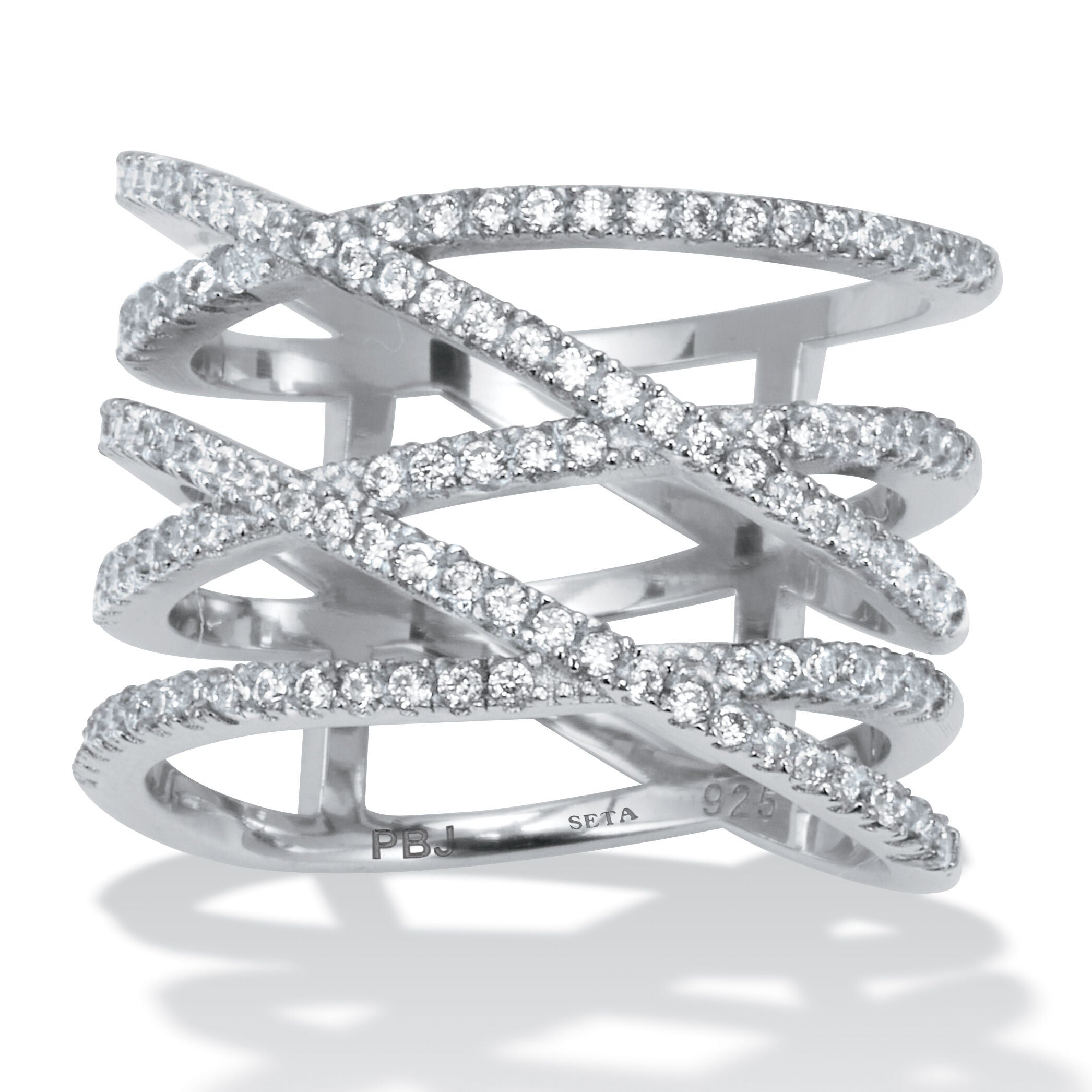 Women's 0.55 TCW Round Cubic Zirconia Sterling Silver Five Row Wrap Ring by PalmBeach Jewelry in White (Size 10)