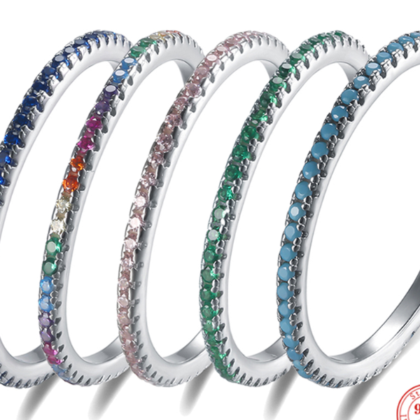 Colorful CZ Thin Finger Rings: Stackable 1.5mm For Women's Wedding & Engagement Kameraon 925 Sterling Silver Fashion J 7 R608S G