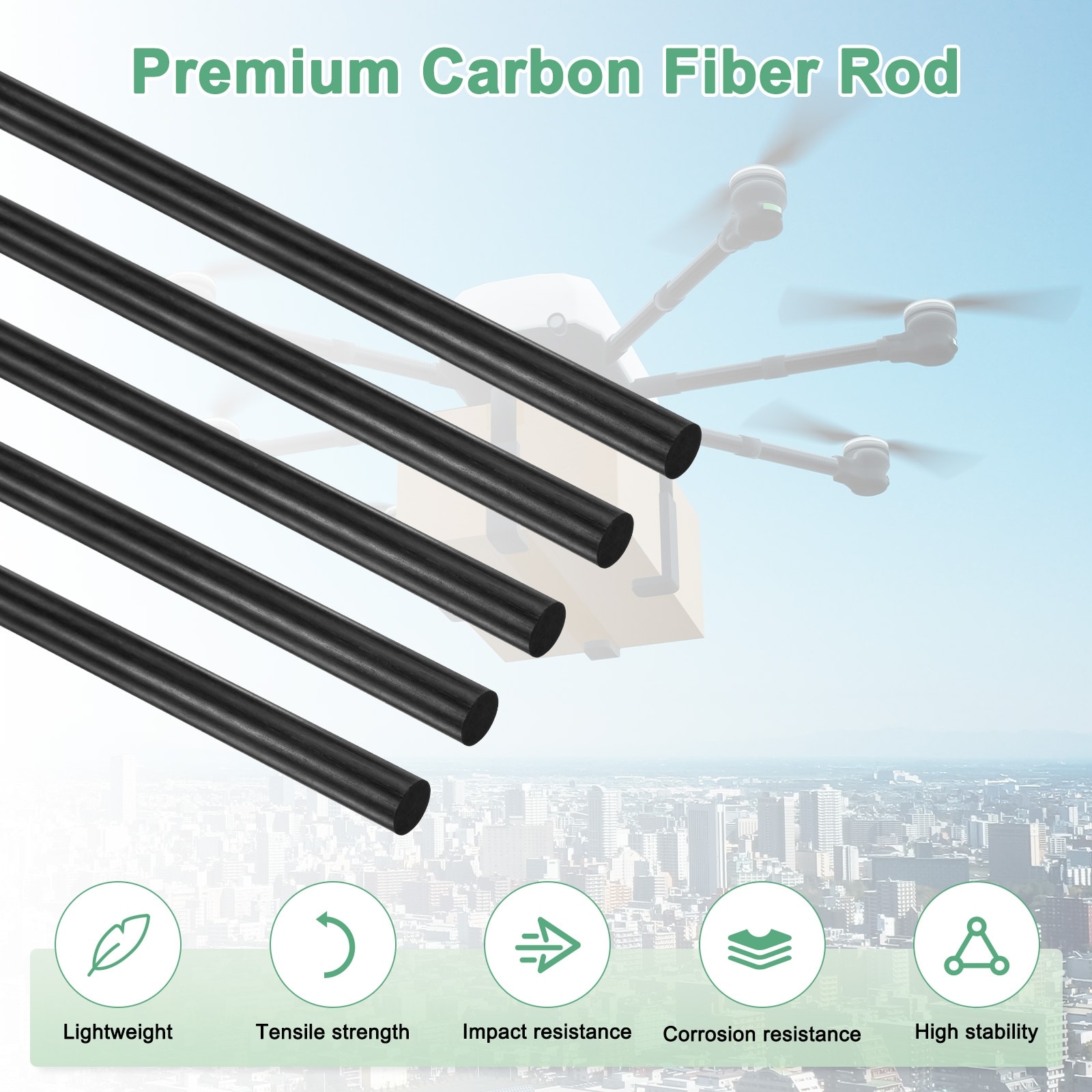 Carbon Fiber Rods, Carbon Fiber Solid Matte Pole for RC Airplane/DIY Craft/Scale Model Kite Wing Tube - Black