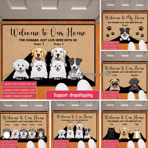 Personalized Pet Cartoon Doormat Custom Dog & Cat Name Welcome Mat For Home 40cmx60cm