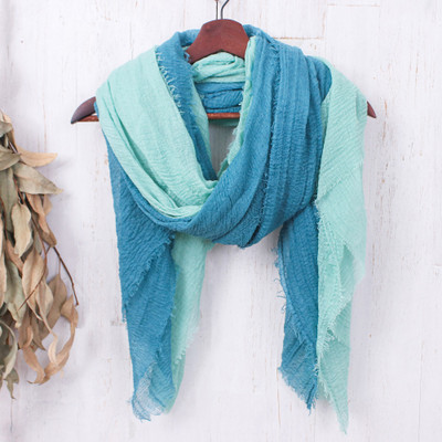 Ocean Subtlety,'Handwoven Cotton Wrap Scarf in Navy from Guatemala'