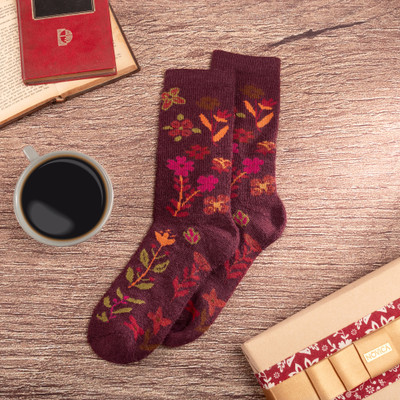 Cozy Chic,'Alpaca Blend Floral Socks from Peru'