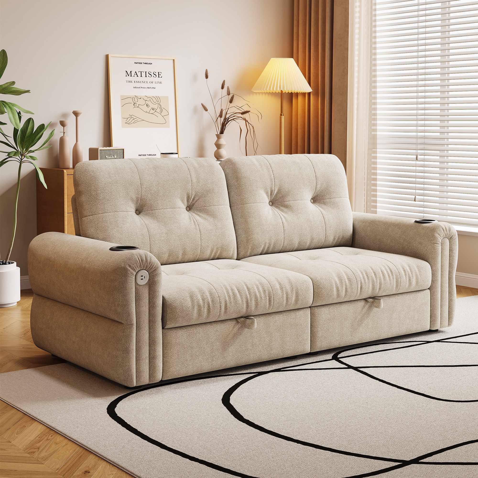 GDFStudio - Chenille Convertible 2-Seater 74" Sofa Bed