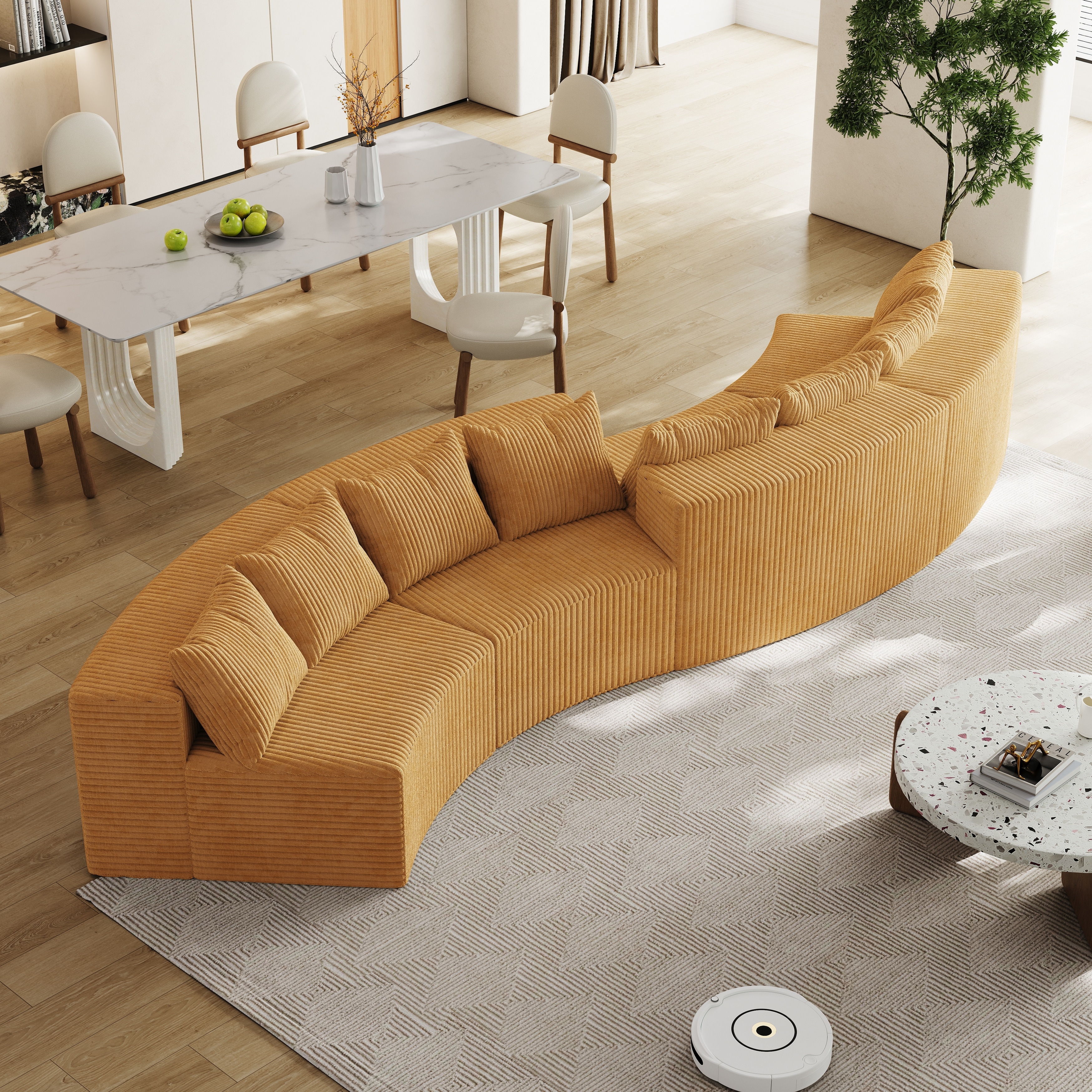 Curved Sectional Sofa, 106.3-inch Oversized Modern Bone-Free Cloud Sofa with 6 Pillows Four-Seater Memory Foam Sofa