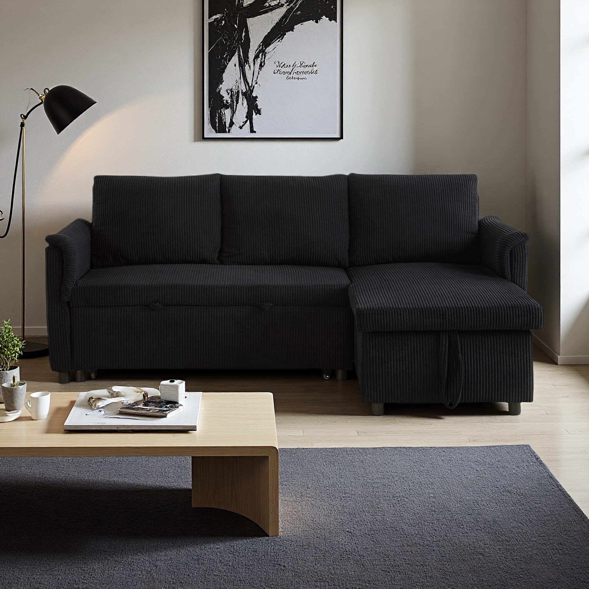 Corduroy Tufted Upholstered Sleeper Sectional Sofa, L-Shaped Modular Convertible Sofa