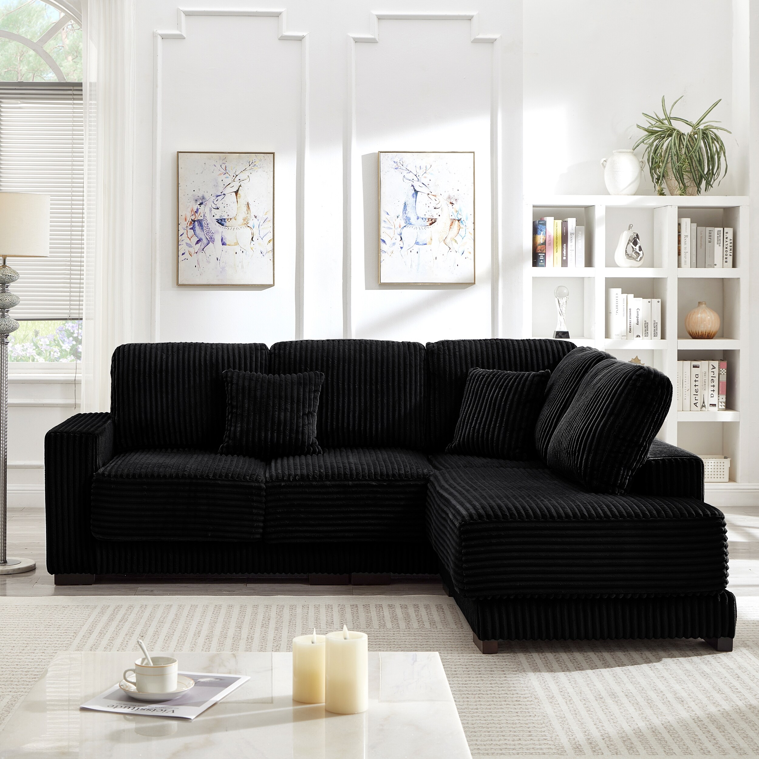 111" Corduroy L-Shaped Sectional Sofa (Right Chaise, 8 Pillows)