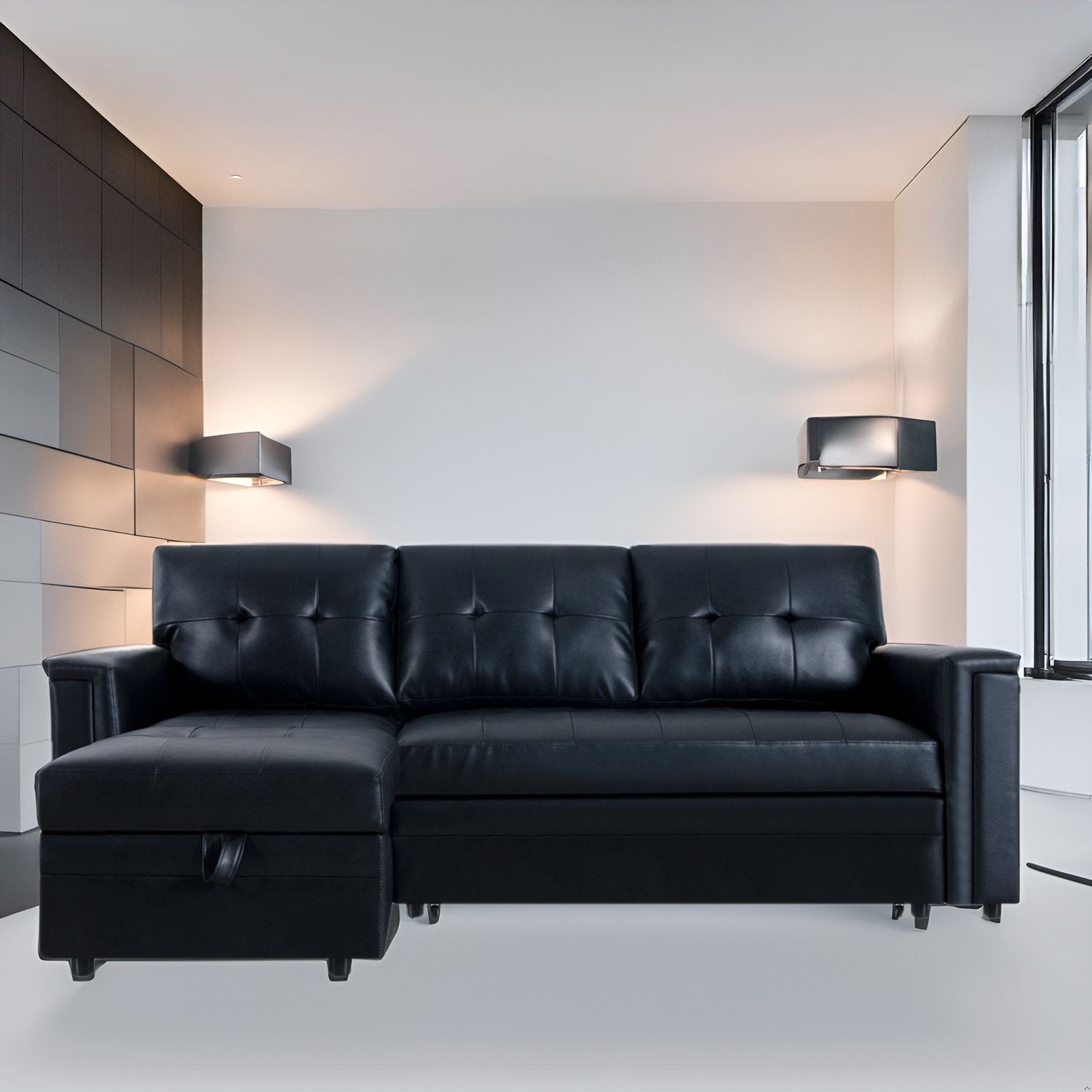 Velvet Reversible Sofabed Sectional Sofa & Chaise - 91" Wide