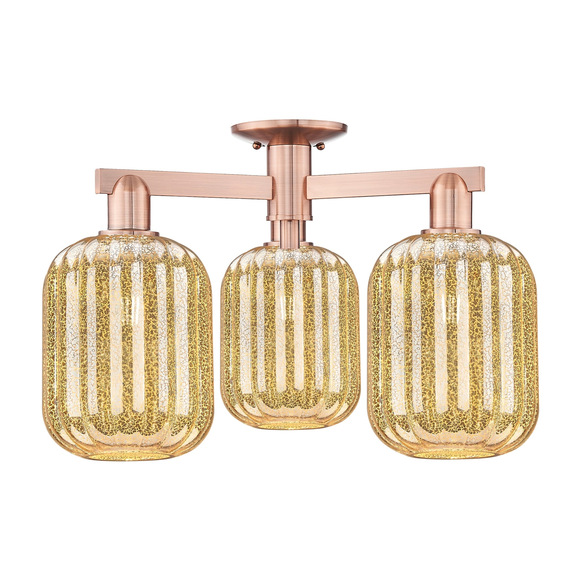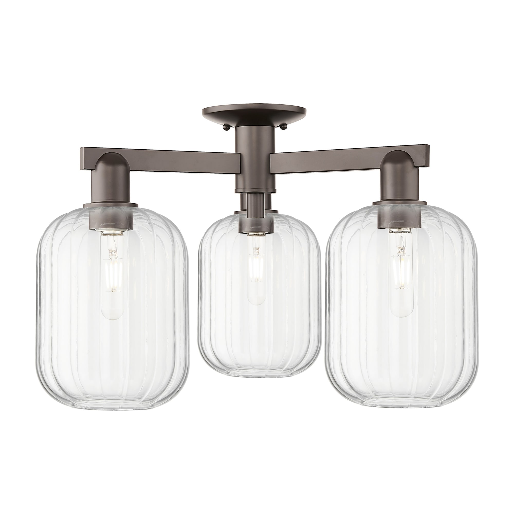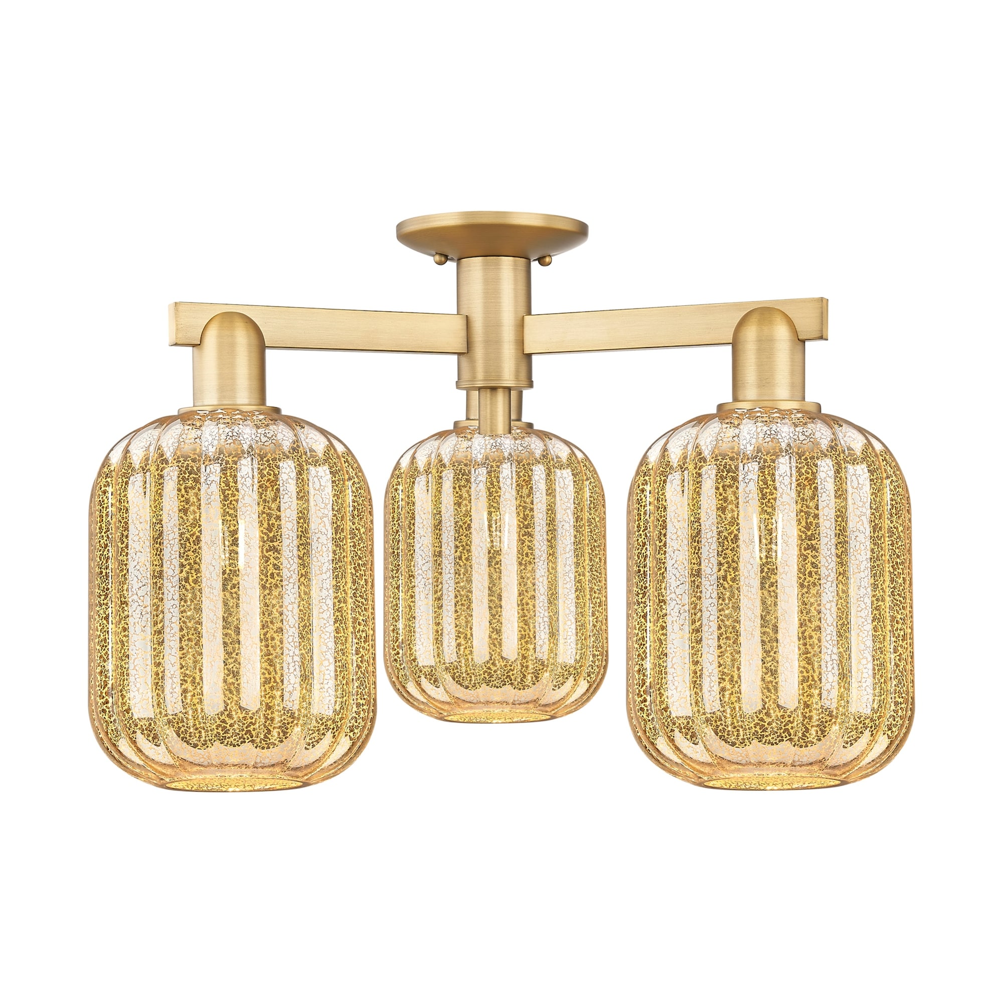 Modern Gold 3-Light Semi Flush Mount Ceiling Light with Clear Glass - Dark Gold - Dia.12"xH11.5"