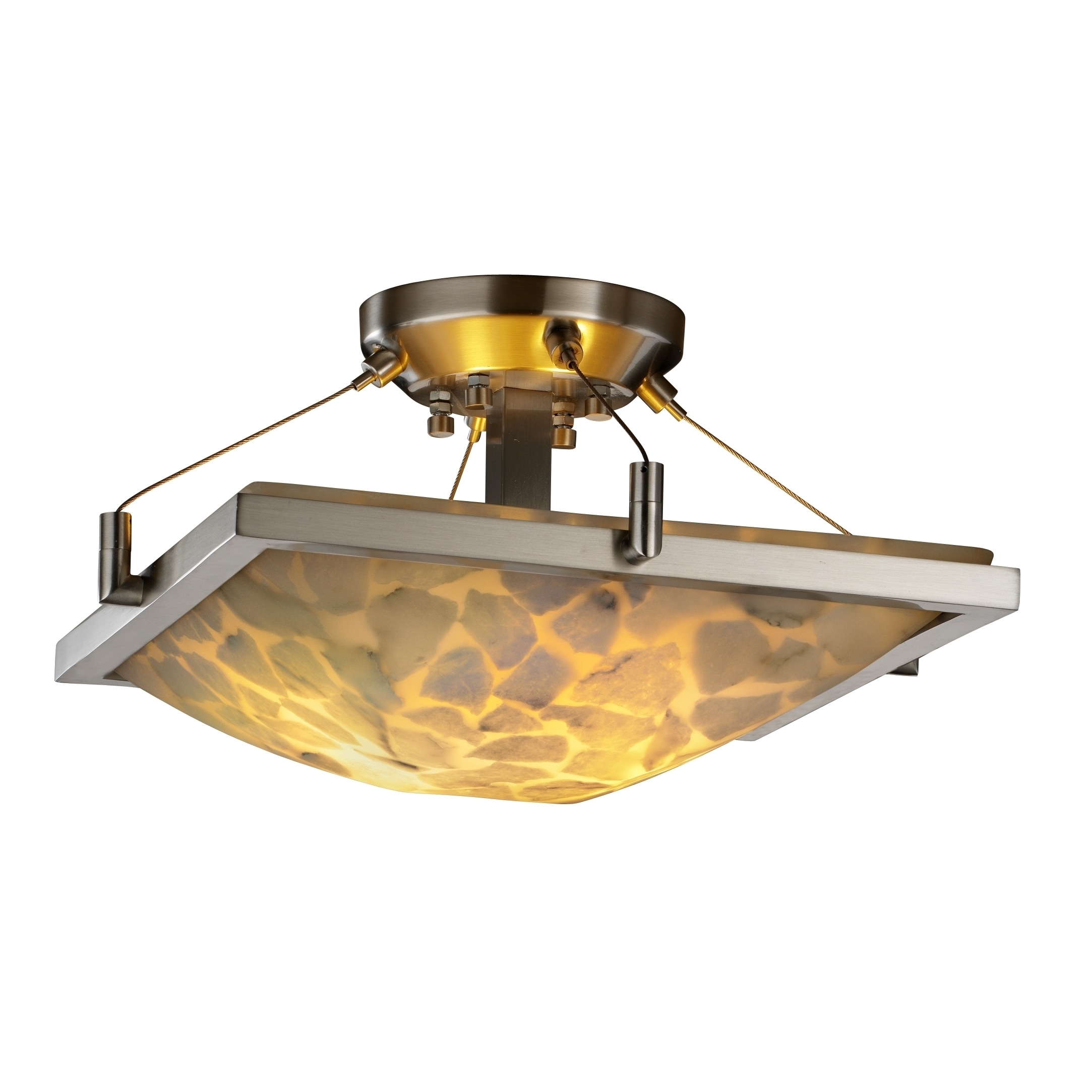 Justice Design Alabaster Rocks Ring 2-light Brushed Nickel Square Bowl Semi-flush