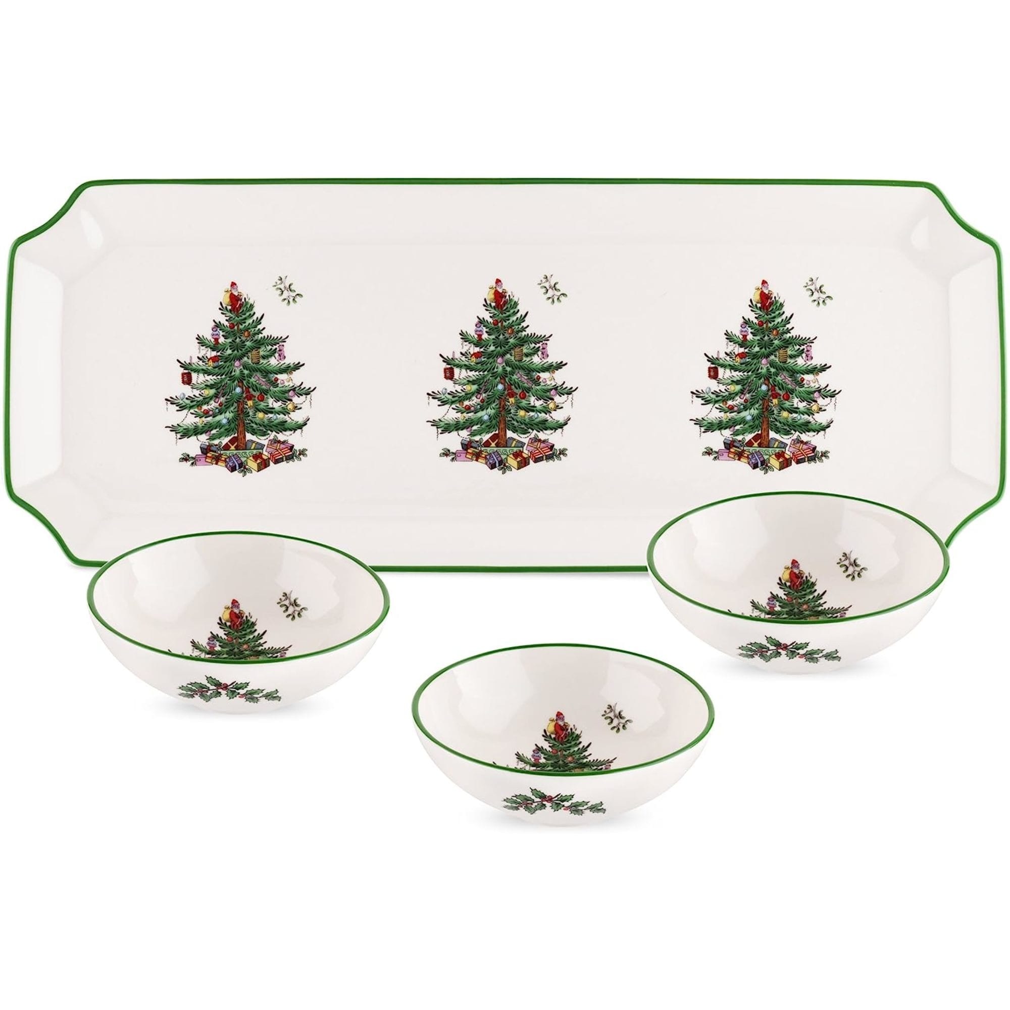 Spode Christmas Tree Rectangular Tray with 3 Dishes - 14" L x 4" W