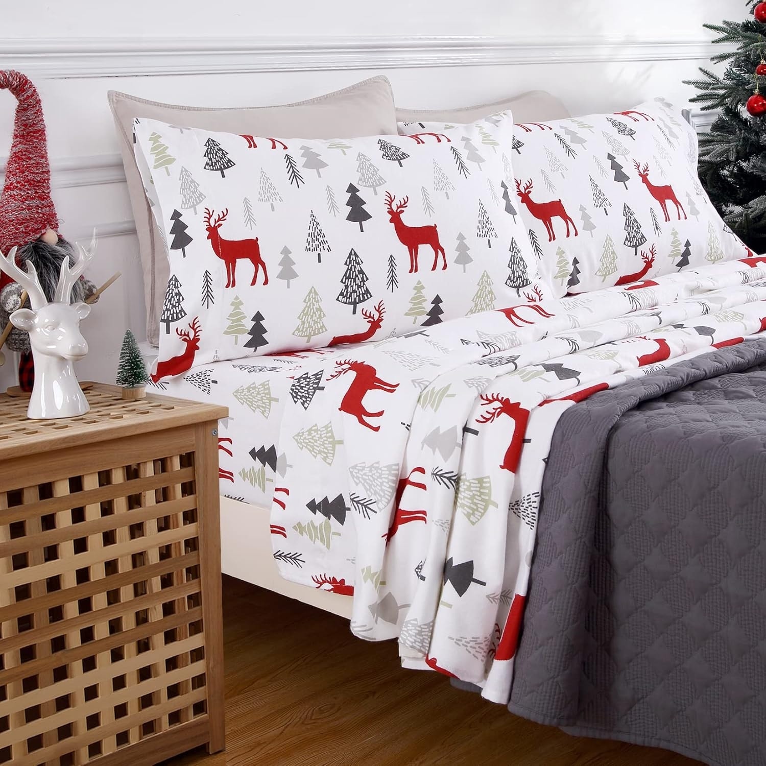100% Cotton Printed Sheet Set, Soft Heavyweight Brushed Flannel