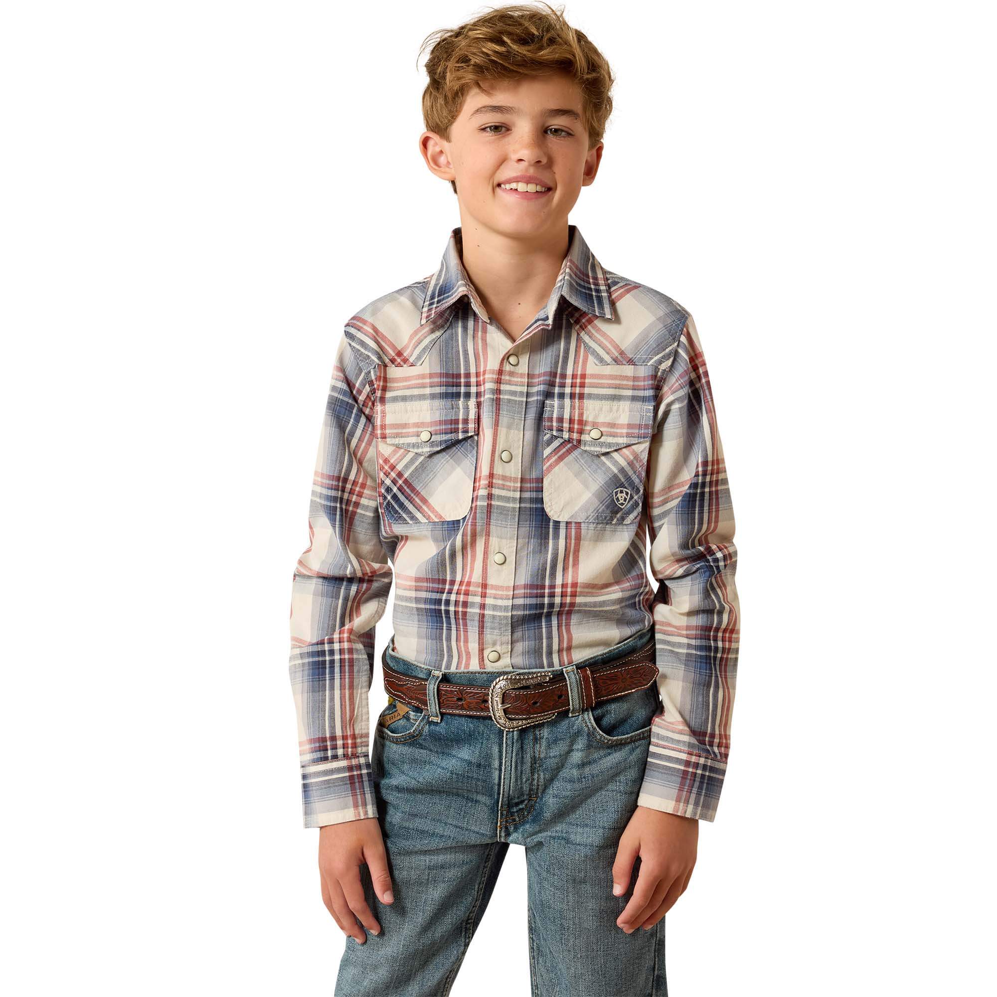 Kid's Retro Hawthorn Snap Shirt in Dawn Blue Plaid, Size: XL by Ariat