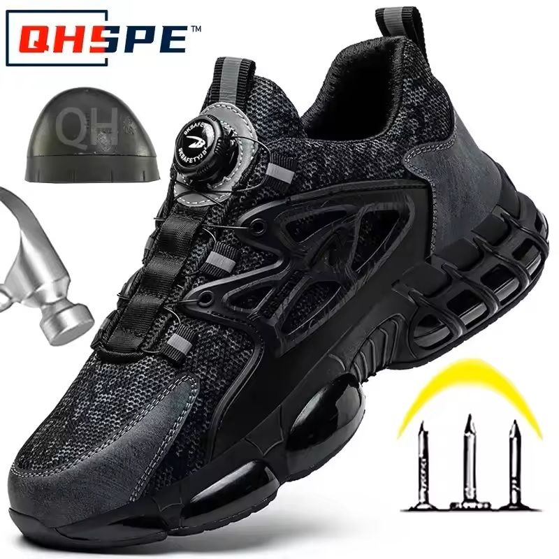 Men's Rotating Button Safety Shoes With Steel Toe Protection g black 7.5 (eu 40)