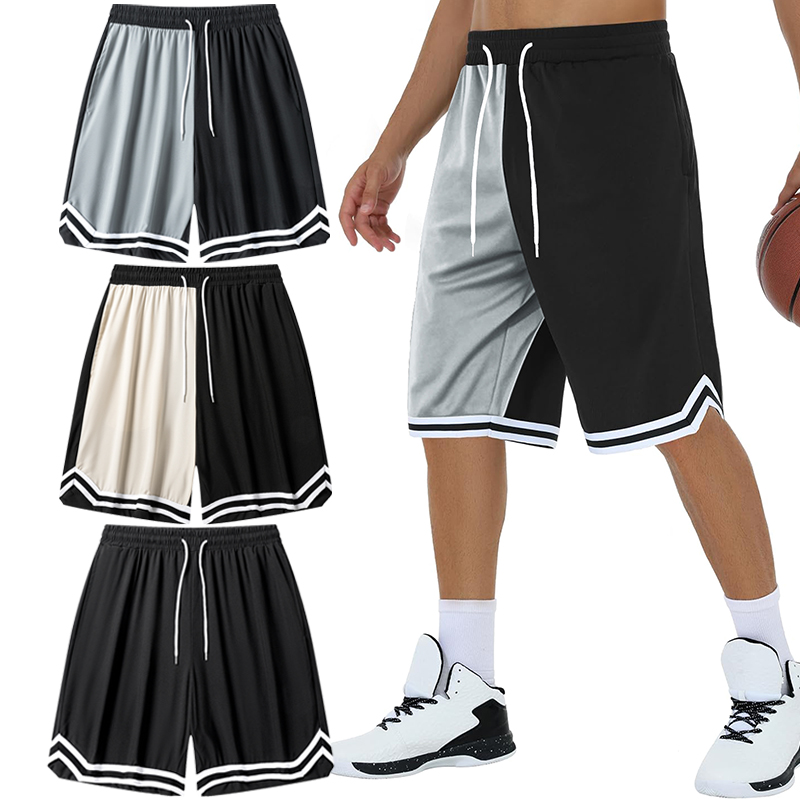 Mens Colorblock Striped Basketball Shorts, Quick Dry Athletic Gym Shorts With Pockets & Drawstring Waist For Workout black l